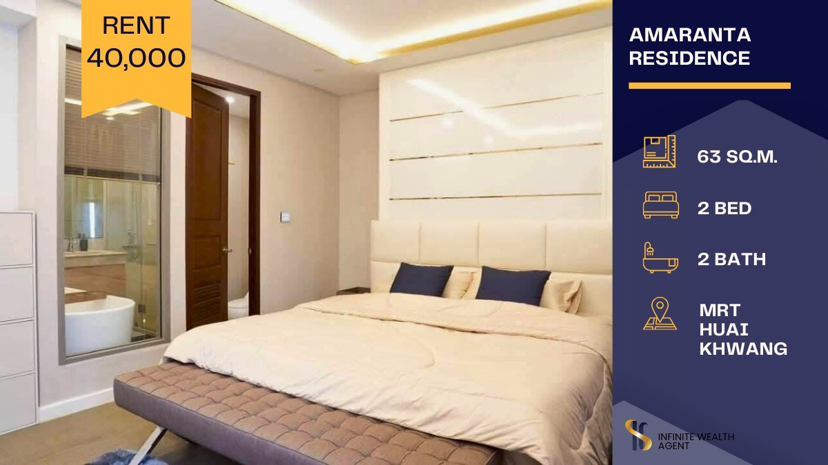 📍 ทำเล: Ratchada, Huai Khwang, MRT Huai Khwang 🏢 โครงการ: Amaranta Residence 📐 ขนาด: 63 ตร.ม. 🛏️ แบบห้อง: 2 Bed 2 Bath 💰 ราคาเช่า: 40,000 บาท/เดือน 📌 สถานะ: Available ✅ จุดเด่นของห้อง: 🏡 ห้องกว้าง ตกแ