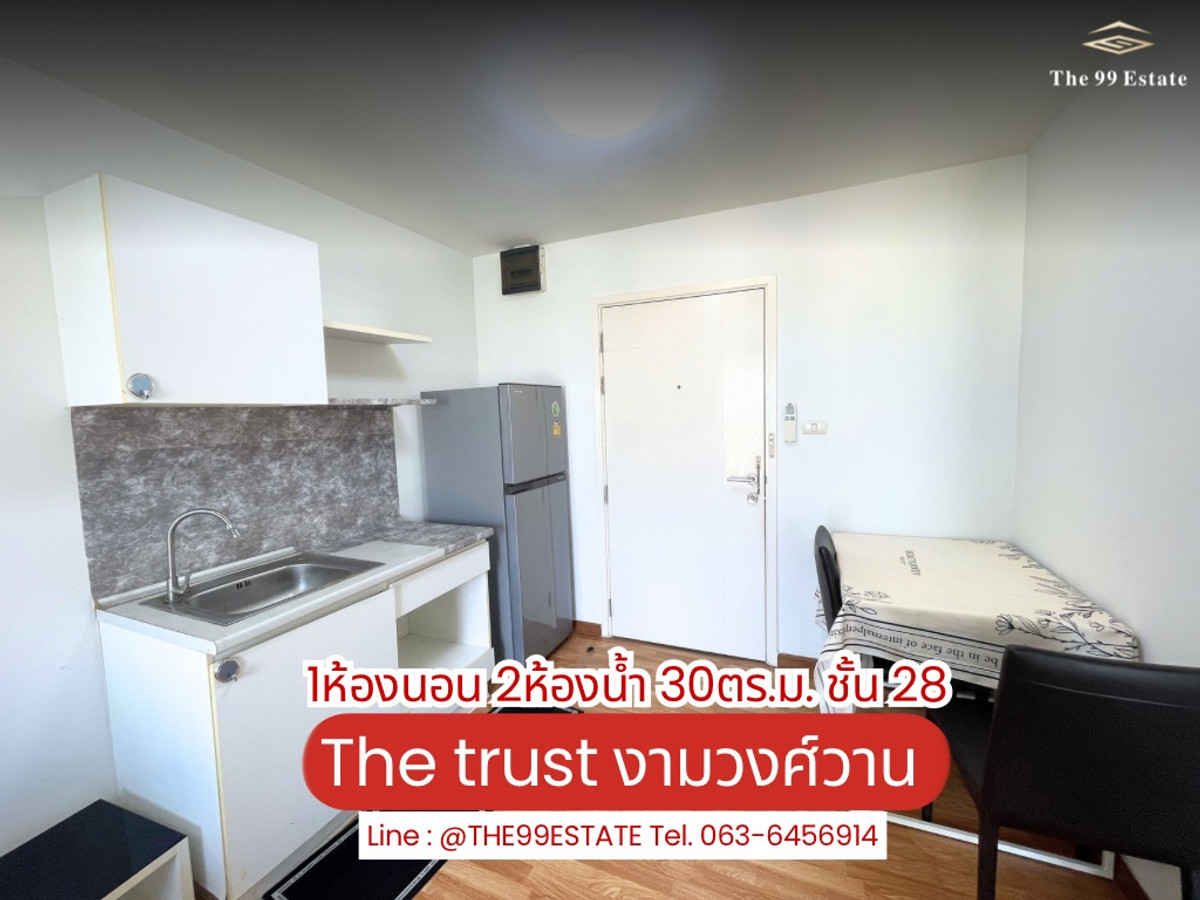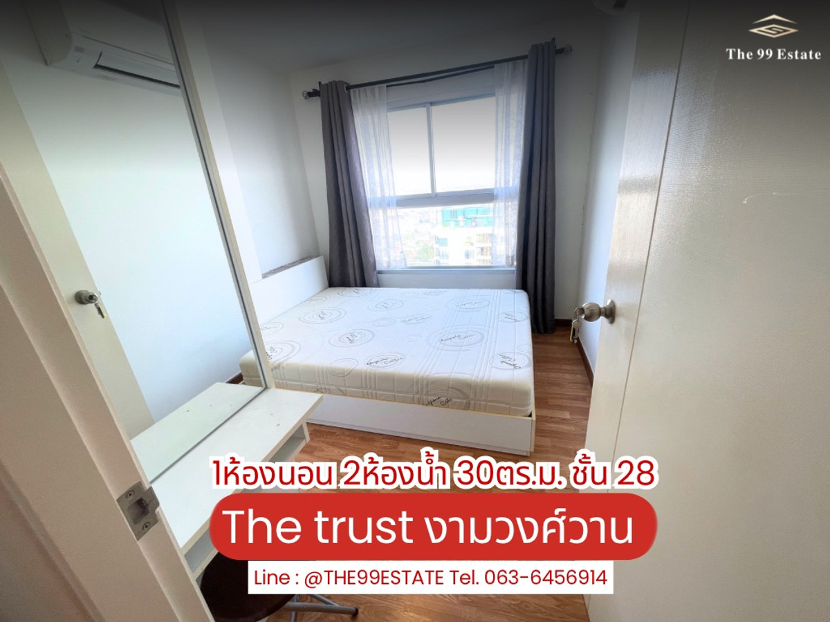 🏙️ ขาย/ให้เช่า เดอะทรัสต์ คอนโด งามวงศ์วาน – 1 ห้องนอน ห้องสวย พร้อมอยู่ เดินทางสะดวก • ใกล้ ม.เกษตร • ราคาต่ำกว่าตลาด ✨ รายละเอียดห้อง • อาคาร A • ชั้น 28 • ขนาด 30 ตร.ม. • 1 ห้องนอน • 2 ห้องน้ำ • วิ