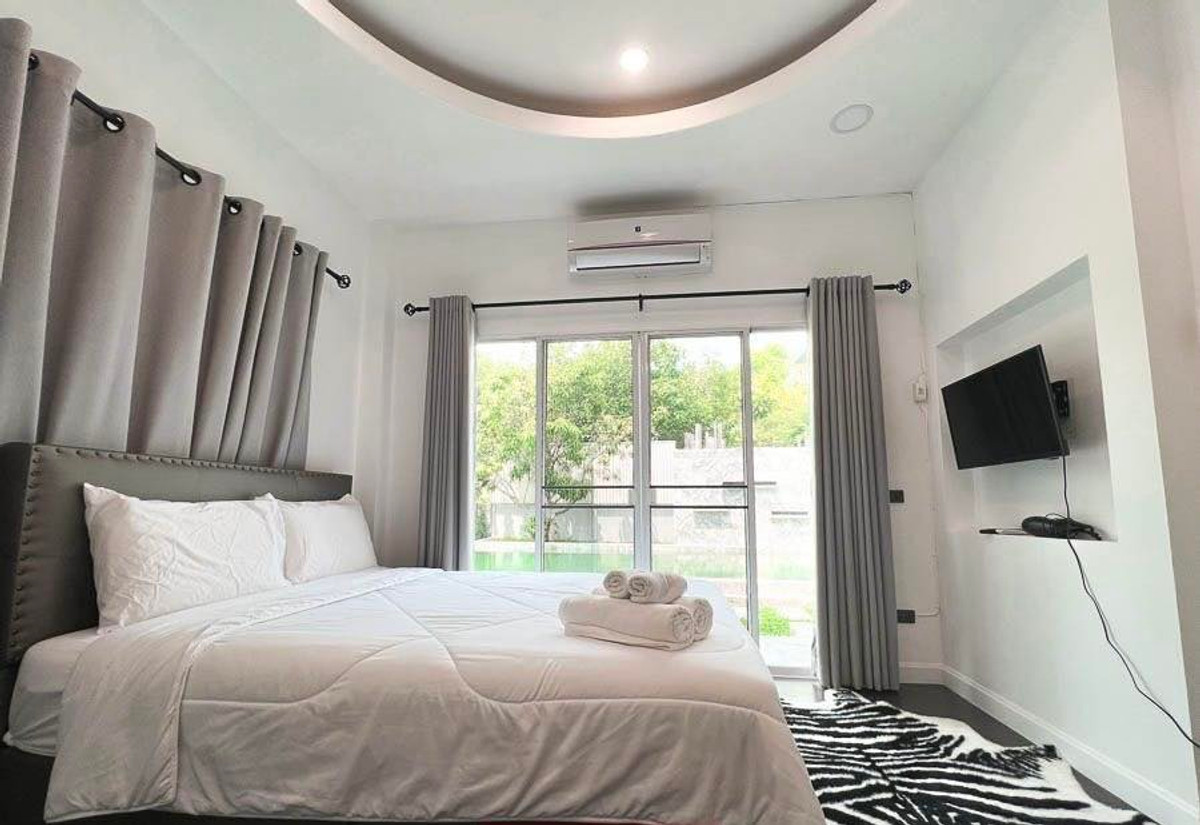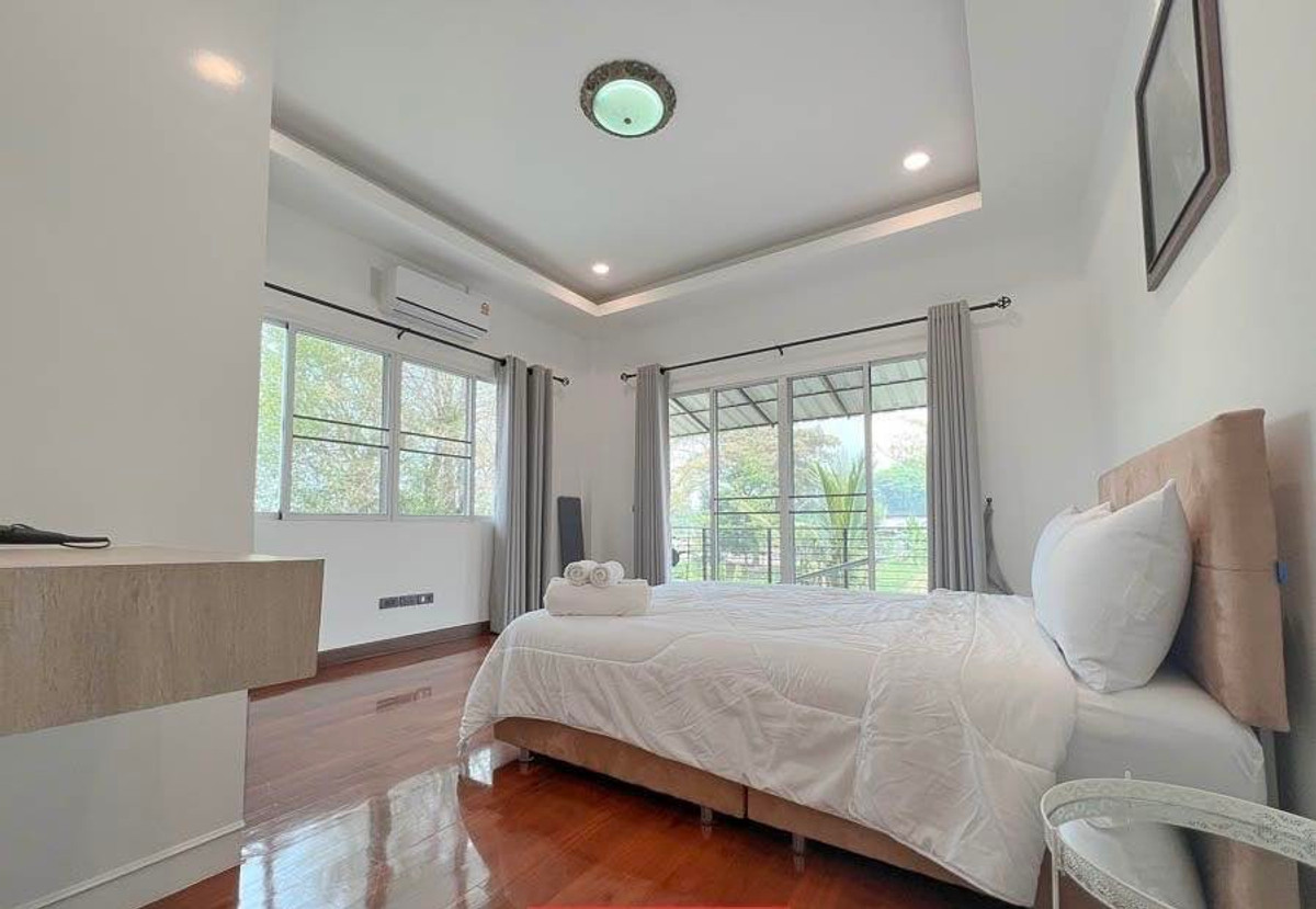 SW002688 ขายบ้านพูลวิลล่า Pool Villa Pool อ.สันทราย จ.เชียงใหม่ ทำเลดี ใกล้ตลาดรวมโชคเชียงใหม่ พร้อมเข้าอยู่ โลเคชัน : สันทราย เชียงใหม่ ขนาดที่ดิน : 121 ตารางวา พื้นที่ใช้สอย : 270 ตารางเมตร ขนาดบ้าน : 2 ชั้น ประเภทบ้าน : 5 ห้องนอน 4 ห้องน้ำ 1 ห้องครัว - 1 ห้องนั่งเล่น - 1 สระน้ำขนาด 4x12 เมตร ราคาขาย : 12,900,000 บาท สถานที่ใกล้เคียง - 2 นาที ถึง แยกหนองจ๊อม(ลิขิตชีวัน) - 4 นาที ถึง โรงเรียนานาชาติต้นกล้า - 6 นาที ถึง กาดรวมโชค - 6 นาที ถึง โฮมโปรสันทราย - 8 นาที ถึง สนามกอล์ฟสันทราย - 11 นาที ถึง มหาวิทยาลัยแม่โจ้ - 11 นาที ถึง เซนทรัลเฟสติวัลเชียงใหม่ - 20 นาที ถึง นิมมาน/สนามบินเชียงใหม่ - 20 นาที ถึง ตัวเมืองเชียงใหม่ มีสิ่งอำนวยความสะดวกดังนี้ - มีโต๊ะพูลให้พร้อมกับบ้าน - เฟอร์นิเจอร์ของทุกชิ้นคือให้พร้อมกับบ้าน - สระว่ายน้ำระบบน้ำเกลือ ขนาด 4×12 เมตร พร้อมกับจากุชชี่ - มีแอร์ให้ทุกห้อง - ประตูเข้าบ้านแบบอัตโนมัติ - มีเครื่องซักผ้าให้ - มีต้นไม้อยู่รอบบริเวณบ้านให้ความร่มรื่น - บ้านมีอากาศถ่ายเทสะดวก - มียามรักษาความปลอดภัยตลอด 24 ชั่วโมง สนใจติดต่อ Line @shoriasset(มี @ ด้วยนะคะ) https://lin.ee/TaMYx2l . K.ดา คลิกเพื่อดูเบอร์โทรติดต่อ K.เอ็ม คลิกเพื่อดูเบอร์โทรติดต่อ *มีบ้านเดี่ยว พูลวิลล่าและคอนโดปล่อยให้เช่าและขายสนใจติดต่อได้ค่ะ --------------------------------------------------------------------------------------------------------------------- SW002688 Selling a pool villa, Pool Villa Pool, San Sai District, Chiang Mai Province, good location, near Ruamchok Market, Chiang Mai, ready to move in Location: San Sai, Chiang Mai Land size: 121 square wah Usable area: 270 square meters House size: 2 floors House type: 5 bedrooms, 4 bathrooms, 1 kitchen - 1 living room - 1 swimming pool size 4x12 meters Selling price: 12,900,000 baht Nearby places - 2 minutes to Nong Chom Intersection (Likhit Chiwan) - 4 minutes to Tonkla International School - 6 minutes to Kad Ruamchok - 6 minutes to HomePro San Sai - 8 minutes to San Sai Golf Course - 11 minutes to Maejo University - 11 minutes to Central Festival Chiang Mai - 20 minutes to Nimman/Chiang Mai Airport - 20 minutes to Chiang Mai City Facilities are as follows: - Pool table provided with the house - All furniture is provided with the house - Saltwater swimming pool, size 4x12 meters, with Jacuzzi - Air conditioning in every room - Automatic door to the house - Washing machine - Trees around the house provide shade - The house has good ventilation - 24-hour security guards Interested, contact Line @shoriasset (with @) https://lin.ee/TaMYx2l . K. Da คลิกเพื่อดูเบอร์โทรติดต่อ K. M คลิกเพื่อดูเบอร์โทรติดต่อ *There are single houses, pool villas and condos for rent and sale. Interested, please contact us.