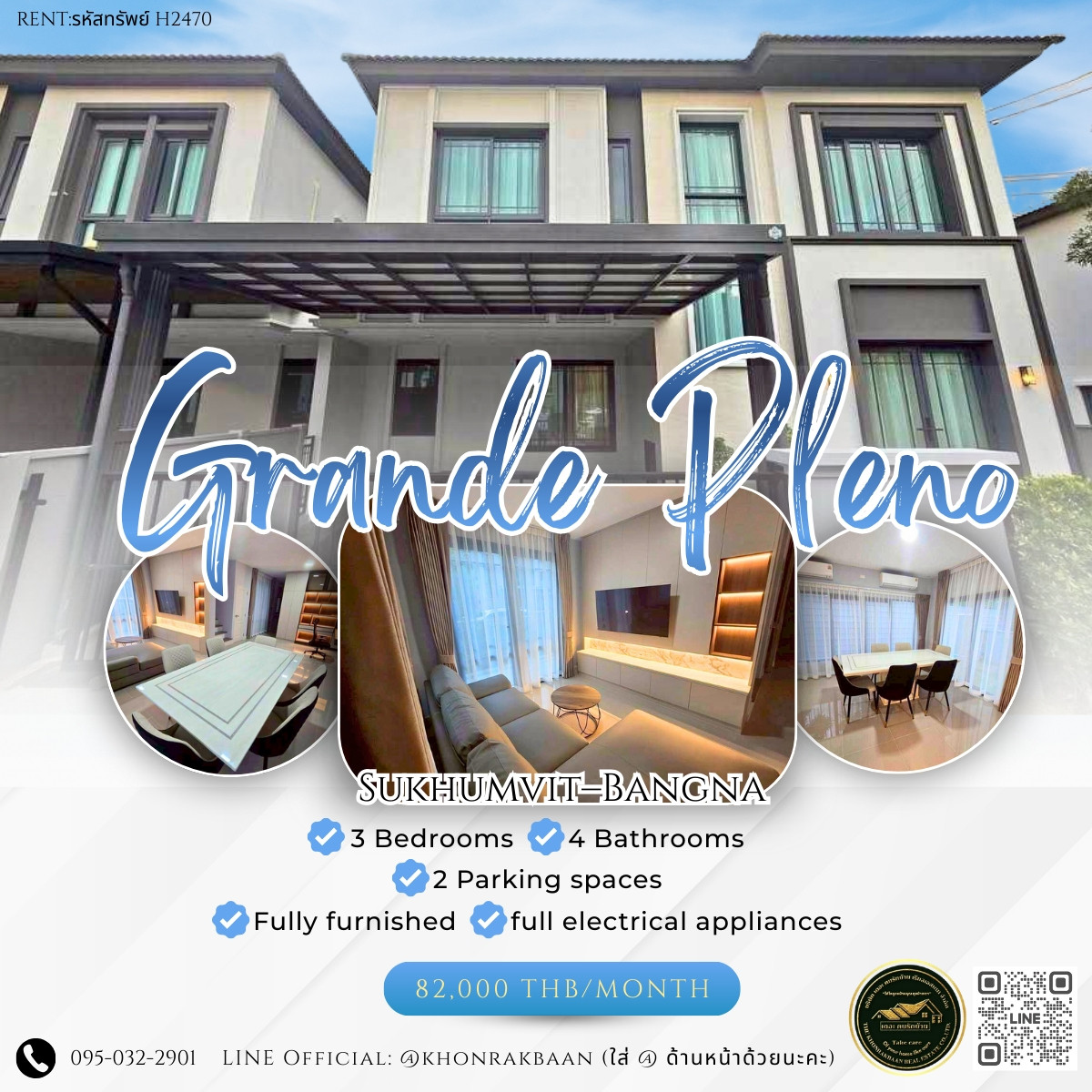 RENT: รหัสทรัพย์ H2470 🏡 Luxury Single House for Rent | Grande Pleno Sukhumvit–Bangna 📍 Prime Location • Only 600 meters to Mega Bangna • Close to Suvarnabhumi Airport • North-facing house • Foreign tenants welcome 💰 Rental Price: 82,000 THB/month 📑 1-year contract | 2-month deposit + 1-month advance 🎁 Free Internet / Gardening / Pest Control 🏠 Property Details • Usable area: 175 sq.m. (including extended kitchen) • Land size: 47 sq.wah • 3 Bedrooms | 4 Bathrooms • 2 Parking spaces • Fully furnished + full electrical appliances: – TV, refrigerator, washing machine – Thai kitchen – Automatic garage door • Ready to move in RENT: รหัสทรัพย์ H2470 🏡 บ้านเดี่ยวสวยหรู พร้อมเข้าอยู่ – Grande Pleno สุขุมวิท–บางนา💰 ราคาเช่า 82,000 บาท/เดือน ✨ บ้านใหม่ตกแต่งสไตล์ Classic Luxury เฟอร์ครบทั้งหลัง 📍 ทำเลดีเยี่ยม • ใกล้ Mega Bangna แค่ 600 ม. • ใกล้สนามบินสุวรรณภูมิ • บ้านหันหน้าทิศเหนือ • ยินดีต้อนรับผู้เช่าชาวต่างชาติ 💰 ราคาเช่า 82,000 บาท/เดือน 📑 สัญญาขั้นต่ำ 1 ปี 💢 ล่วงหน้า 1 เดือน + ประกัน 2 เดือน 🎁 ฟรีอินเทอร์เน็ต / ทำสวน / กำจัดแมลง 🏠 ข้อมูลบ้าน • พื้นที่ใช้สอย 175 ตร.ม. (รวมต่อเติมครัว) • ที่ดิน 47 ตร.ว. • 3 ห้องนอน 🛏️ • 4 ห้องน้ำ 🚿 • 2 ที่จอดรถ 🚙 • เฟอร์นิเจอร์ครบ + ⚡️ เครื่องใช้ไฟฟ้า ทีวี ตู้เย็น ครัวไทย เครื่องซักผ้า ประตูจอดรถอัตโนมัติ • พร้อมเข้าอยู่ทันที ┏━━━━━━━━━━━━━━━━━━━┓ 🏢 The Khonrakbaan Real Estate Co., Ltd 📍บริการหลังการเช่าตลอดสัญญา | Full after-rent support throughout the lease ⚠️ ปล่อยเช่าราคาเจ้าของ | Rent at owner’s price ⚠️ 💁♀️ รับจัดหาออเดอร์ / รับฝากเช่า / ปล่อยเช่า | Property sourcing / consignment / leasing services 📅 นัดหมายล่วงหน้า 1 วัน | Appointment required 1 day in advance 👇 Contact BEE (Thai/Eng) 👇 📞 Tel: คลิกเพื่อดูเบอร์โทรติดต่อ 📱 WhatsApp: คลิกเพื่อดูเบอร์โทรติดต่อ 💬 LINE Official: @khonrakbaan (ใส่ @ ด้านหน้าด้วยนะคะ) 📩 Mail: คลิกเพื่อดูอีเมล ┗━━━━━━━━━━━━━━━━━━━┛ #GrandePlenoBangna #HouseForRentBangna #LuxuryHomeBangna #NearMegaBangna #ReadyToMoveIn #บ้านเช่าบางนา #บ้านหรูพร้อมอยู่ #บ้านเดี่ยวให้เช่า #ทำเลดีบางนา #บ้านเช่าใกล้เมกาบางนา #ติดเมกาบางนา #บ้านสวยพร้อมเข้าอยู่