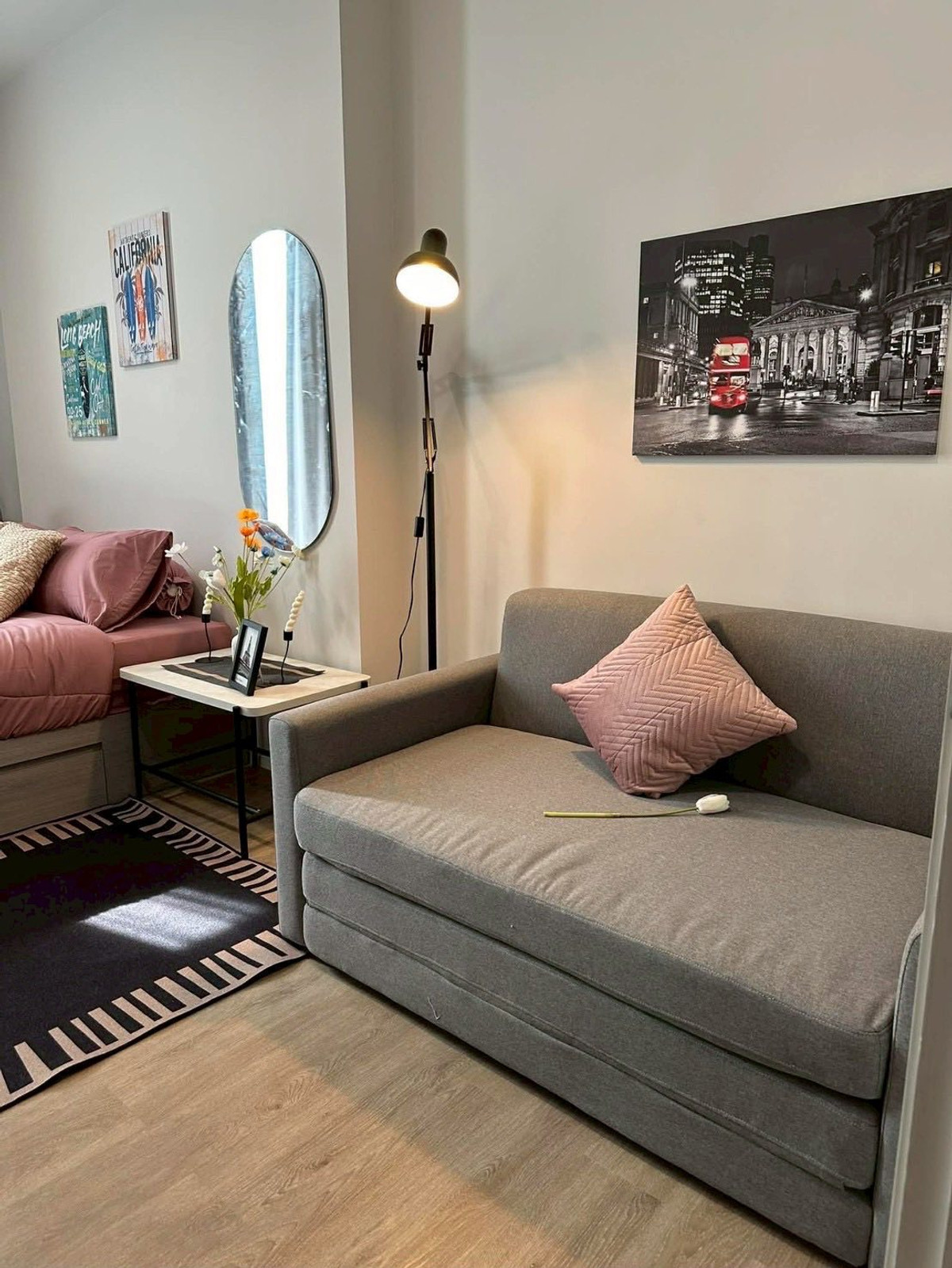 รหัสทรัพท์ (PY-478) ปล่อยเช่า คอนโด Modiz Rhyme Ramkhamhaeng (โมดิซ ไรห์ม รามคำแหง) แต่งครบ พร้อมเข้าอยู่ ราคาเพียง 13,500 บาท/เดือน (รวมค่าส่วนกลาง) ✨ รายละเอียดห้อง: • ห้องใหม่แกะกล่อง เฟอร์นิเจอร์ค