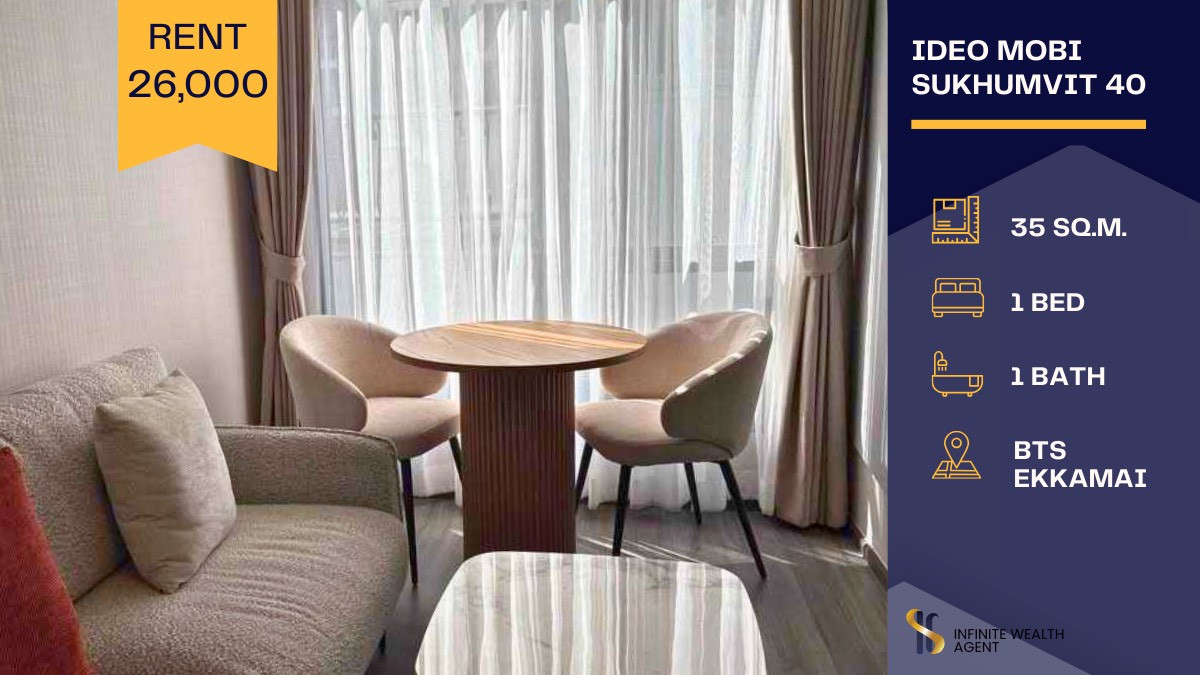 ✨ให้เช่า Ideo Mobi Sukhumvit 40 ห้องใหม่แกะกล่อง ไม่เคยปล่อยเช่า!🏡เฟอร์นิเจอร์ใหม่ทั้งห้อง + เครื่องใช้ไฟฟ้าครบชุด⚡ใกล้ BTS เอกมัย 🚆 ราคาเพียง 26,000 บาท/เดือน 🌟