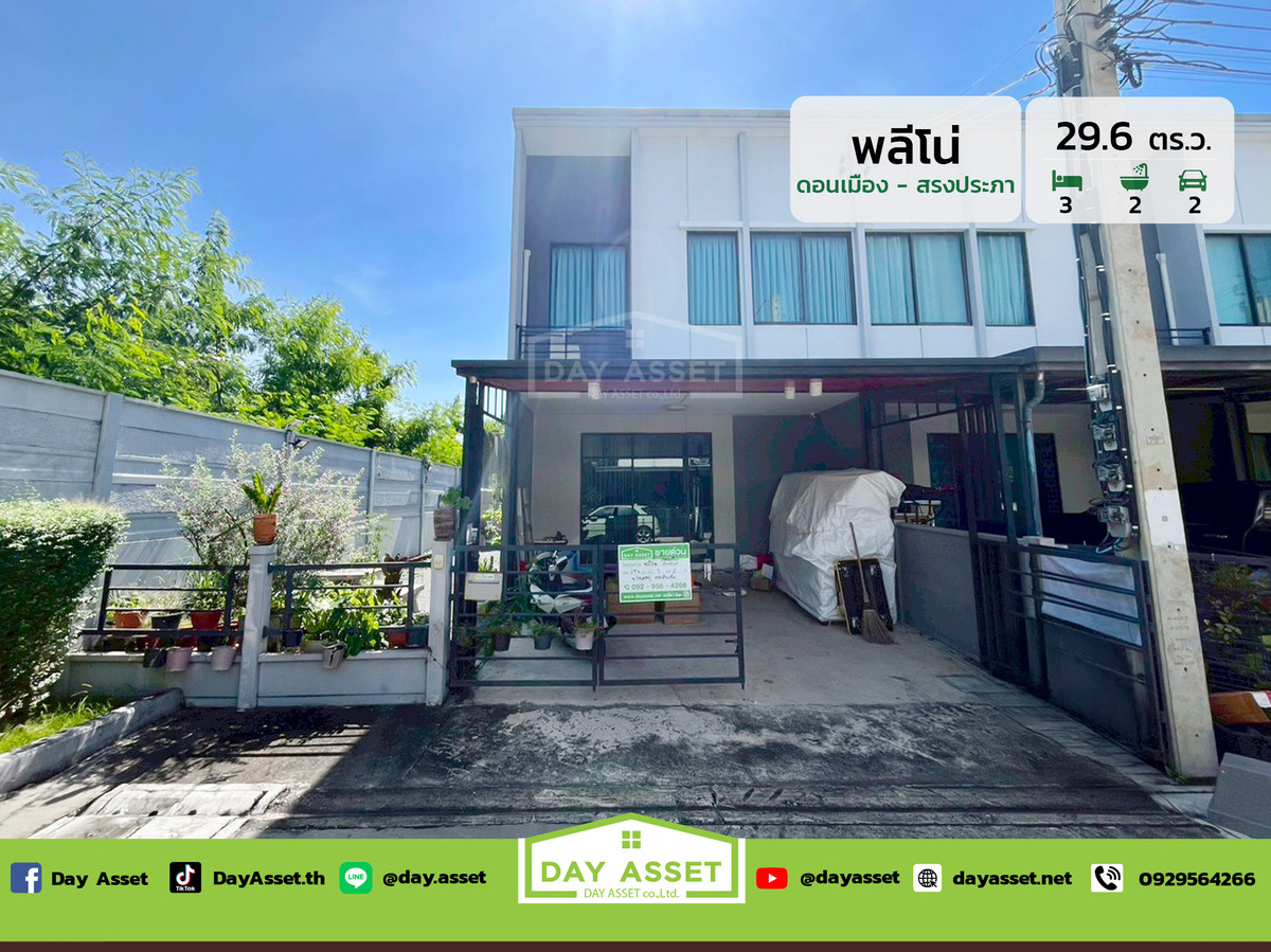 ขายทาวน์โฮม 2 ชั้น หมู่บ้านพลีโน่ ดอนเมือง-สรงประภา : Pleno Donmuang-Songprapa มีพื้นที่ด้านข้างตัวบ้าน การเดินทางสะดวกใกล้สนามบินดอนเมือง และทางด่วน เนื้อที่ 29.6 ตร.ว. ขายเพียง 3,850,000 ล้านบาท รหัสทรัพย์ DH-1-2-0137 ทาวน์โฮม 2 ชั้น เนื้อที่ : 29.6 ตร.ว. ห้องนอน : 3 ห้อง ห้องน้ำ : 2 ห้อง ที่จอดรถ : 2 คัน บ้านหันหน้าทิศ : ทิศเหนือ แถมฟรี • โซฟาตัว L , ที่นอนพร้อมเตียง • ตู้เสื้อผ้าพร้อมลิ้นชัก Built-in , ชั้นวางทีวี • เครื่องทำน้ำอุ่น , ตู้เย็น 21 คิว , ทีวี 50" • เครื่องซักผ้าพร้อมเครื่องอบผ้า , ฮู้ดดูดควัน • ปี๊มน้ำพร้อมแทงค์น้ำ , โต๊ะม้าหินอ่อน และประตูแบบ Digital Door Lock การเดินทาง : • สนามบินดอนเมือง • ถนนวิภาวดี , ถนนสรงประภา , ถนนเดชะตุงคะ • ทางด่วนศรีสมาน , ทางด่วนดอนเมืองโทลเวย์ • รถไฟฟ้าสายสีชมพู สถานี แจ้งวัฒนะ 14 สถานที่ใกล้เคียง : • โรงพยาบาลมงกุฎวัฒนะ • โรงพยาบาลจุฬาภรณ์ • มหาวิทยาลัยรังสิต • โรงเรียนพระหฤทัยดอนเมือง • สำนักงานเขตดอนเมือง • ศูนย์ราชการแจ้งวัฒนะ • เมืองทองธานี • Zeer รังสิต • Robinson ศรีสมาน • Central แจ้งวัฒนะ • Central รามอินทรา • Makro / Lotus's แจ้งวัฒนะ • Charn at the Avenue แจ้งวัฒนะ 14 • Beehive เมืองทอง • วัดสีกัน (วัดพุทธสยาม) • วัดกู้ (พระนางเรือล่ม) • ตลาดบุญอนันต์ • ตลาดสี่มุมเมือง • ตลาดโอโซนวัน ราคาขาย 3,850,000 ล้านบาท ที่ตั้ง : หมู่บ้านพลีโน่ ดอนเมือง-สรงประภา ซอยสรงประภา 30 สีกัน ดอนเมือง กรุงเทพ 10210 ------------------- ชมบ้านทั้งหมดของเรา www.dayasset.net Add Line เป็นเพื่อนกับเรา >> https://bit.ly/3brXstc Facebook DayAsset >> https://bit.ly/3A83FEg ------------------- DAY ASSET บ้านที่คุณต้องการ คือความชำนาญของเรา ชมบ้านทั้งหมดของเรา www.dayasset.net รับจัดหาบ้าน ,คอนโด, ที่ดิน เพื่อการ ซื้อ - ขาย – เช่า รับฝากขาย รีโนเวท ทำการตลาดให้จนกว่าจะขายได้ อยากขายบ้านไวฝากเราขายทำการตลาดให้ทุกช่องทางจนกว่าจะขายได้ ไม่มีค่าใช้จ่ายในการทำการโฆษณา เรามีบ้านให้คุณเลือกตาม location ที่คุณต้องการ โดยทีมงานมืออาชีพประสบการณ์มากกว่า 10 ปี ------------------- สอบถามข้อมูลเพิ่มเติม และช่องทางการติดต่อ นัดชมล่วงหน้า โทร. คลิกเพื่อดูเบอร์โทรติดต่อ , คลิกเพื่อดูเบอร์โทรติดต่อ หรือ Line ID : @day.asset : https://bit.ly/3brXstc