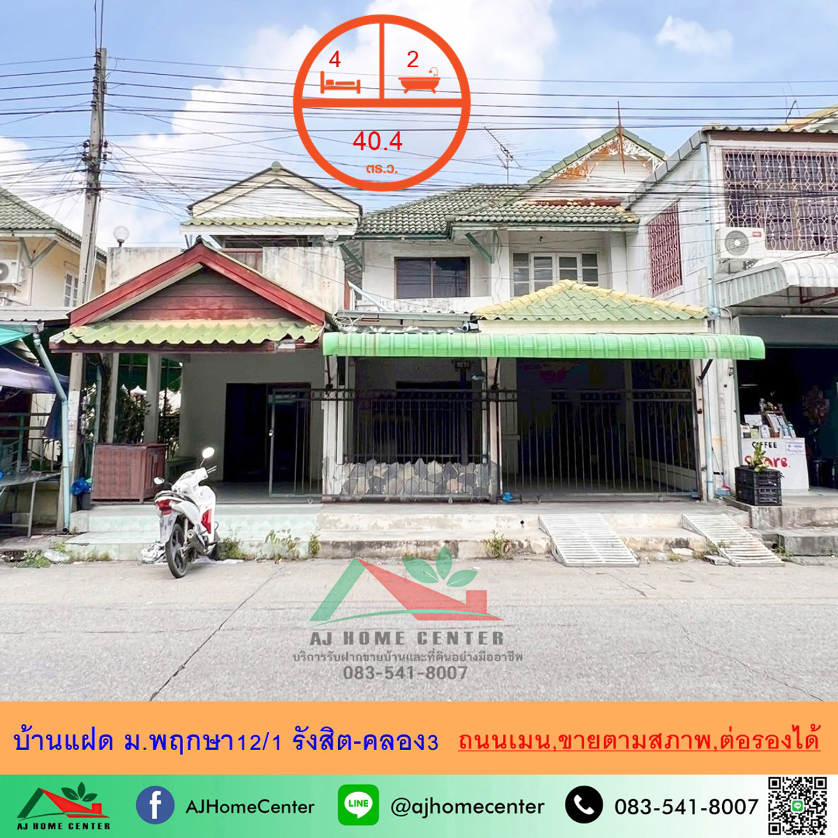 ขายบ้านแฝด40.4ตรว. ถนนเมน ม.พฤกษา12/1 รังสิต-คลอง3 เหมาะซื้อไปรีโนเวท จัดกู้ฟรี . บ้านแฝด 2 ชั้น 40.4 ตารางวา พื้นที่ใช้สอย 160 ตารางเมตร 4 ห้องนอน 2ห้องน้ำ 1ห้องครัว 1ห้องรับแขก 2ที่จอดรถ - ต่อเติมเทอเรซ + ห้องนอน 1 ห้อง - ต่อเติมครัว - วัสดุปูพื้น : ชั้นล่าง-กระเบื้อง / ชั้นบน ปาเก้ . ที่ตั้งทรัพย์สิน : ม.พฤกษา12/1 รังสิต-คลอง3 (ถนนเมน) ถ.เลียบคลองสาม ต.คลองสาม อ.คลองหลวง จ.ปทุมธานี พิกัดโครงการ : https://maps.app.goo.gl/7qAszYswfvBveJBx5 . ราคาขาย 2.49 ล้านบาท . จุดเด่น - บ้านแฝดขายตามสภาพ โครงสร้างแข็งแรง พื้นที่ใช้สอยจัดเต็ม - ตัวบ้าน อยู่ถนนเมนโครงการ จอดรถหน้าบ้านได้ ค้าขายได้ - มีตลาดขนาดย่อมอยู่ในตัวโครงการ - เดินทางสะดวกมีรถตู้ในหมู่บ้าน รถสองแถวสีเขียว - เข้าออกได้หลายเส้นทาง ทั้ง ถ.รังสิต-นครนายก ถ.วงแหวนตะวันออกบางนา - บางปะอิน ถ.โยธาธิการคูคต-คลองหลวง และทางด่วนกาญจนาภิเษก - ใกล้ตลาด ร้านค้า ร้านอาหาร โรงพยาบาล ห้างสรรพสินค้า และหน่วยงานราชการ - ยินดีรับสัญญารีโนเวท - ราคาต่อรองได้ - บริการจัดสินฟรีเชื่อโดยมืออาชีพ - มีบริการรับผ่อนตรงกับบริษัทชั้นนำที่น่าเชื่อถือ . สถานที่ใกล้เคียง - บิ๊กซี คลองสาม - โรงเรียนสารสาสน์คลองหลวง - โรงเรียนสวนกุหลาบ - โลตัส รังสิต-นครนายก - ร.พ.บางปะกอกรังสิต - ฟิวเจอร์ รังสิต . สนใจติดต่อ คุณแบงค์ เบอร์โทรศัพท์ คลิกเพื่อดูเบอร์โทรติดต่อ / คลิกเพื่อดูเบอร์โทรติดต่อ / คลิกเพื่อดูเบอร์โทรติดต่อ