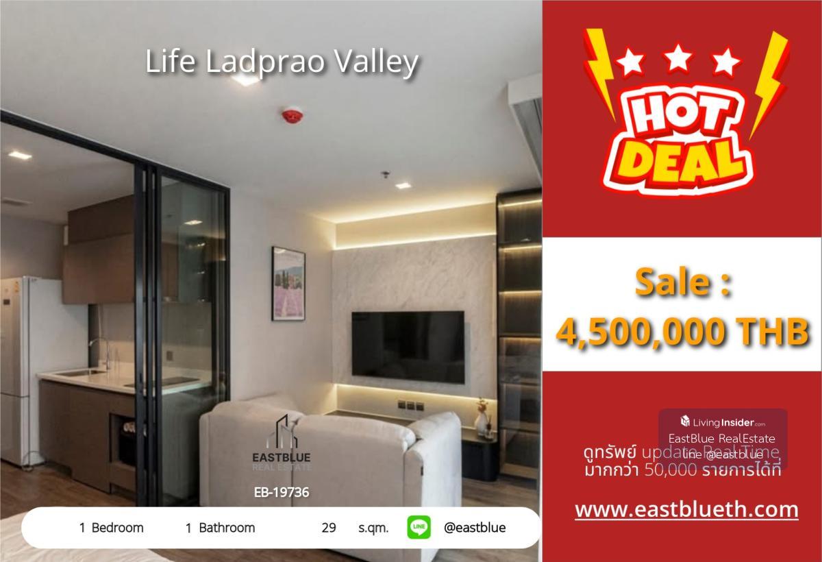 ราคาจริงรวมค่าใช้จ่ายแล้วคอนโด Life Ladprao Valley 29 ตร.ม. ใกล้ BTS/MRT ขาย 4.5 ลบ. หรือเช่า 22,000 บ./ด. เดินถึง Central, Union Mall, Tesco Lotus สะดวกสุดใจ!