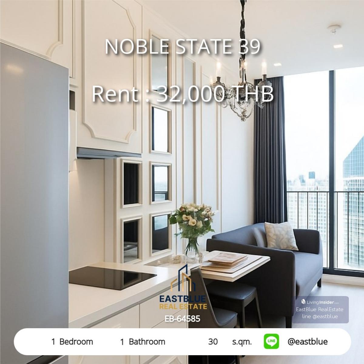 เช่าคอนโด NOBLE STATE 39 ใกล้ BTS พร้อมพงษ์ 32,000 บาท/ด. ห้อง 1 นอน 30 ตรม. สบาย พร้อมสิ่งอำนวยความสะดวกครบ!