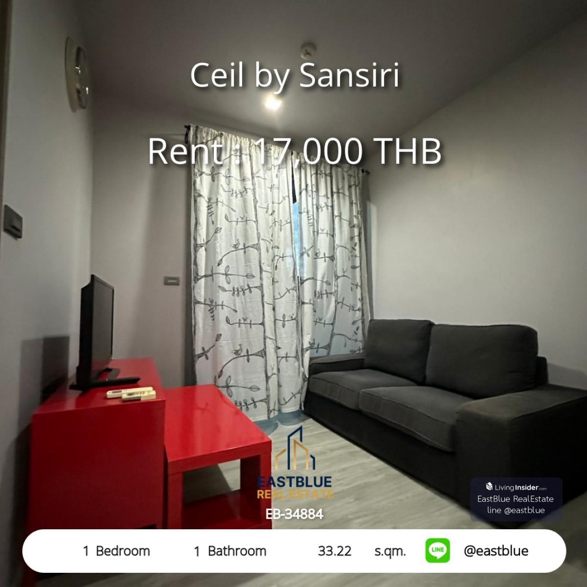 เช่าคอนโด Ceil by Sansiri 33 ตร.ม. ใกล้ BTS เอกมัย พร้อมอยู่ 1 ห้องนอน ราคาสุดคุ้มเพียง 17,000 บาท/เดือน!