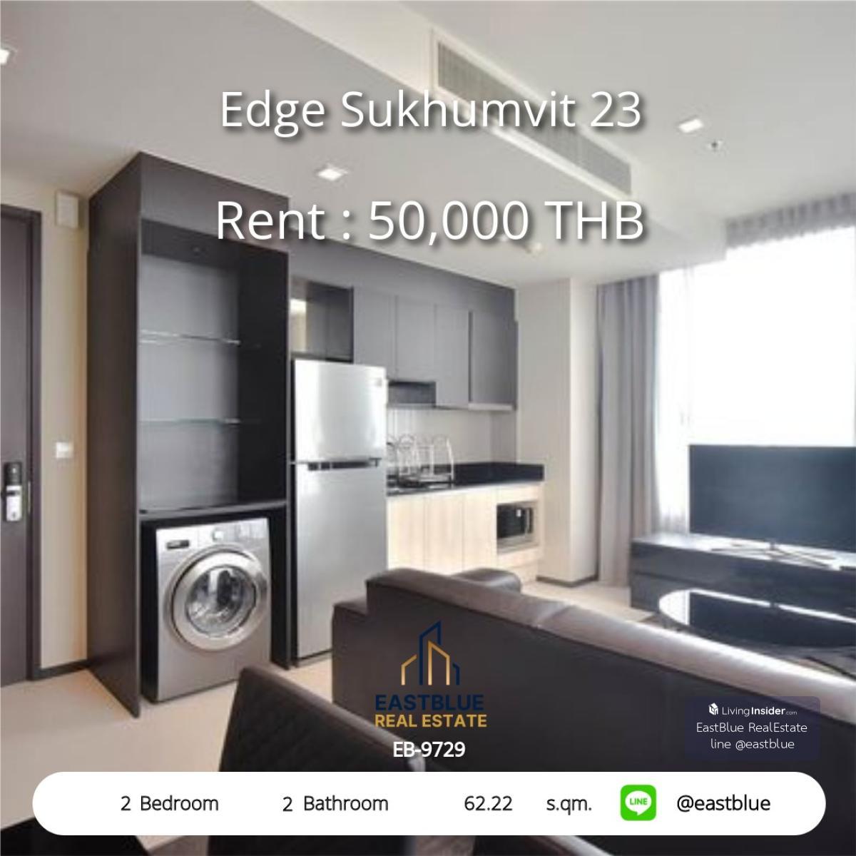 เช่าคอนโด Edge Sukhumvit 23 2 ห้องนอน ใกล้ BTS อโศก เพียง 50,000 บ./ด. พื้นที่ 62 ตร.ม. พร้อมสิ่งอำนวยความสะดวกครบครัน!
