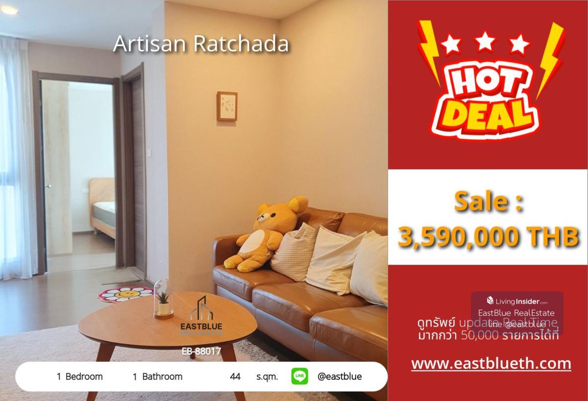 ราคาจริงรวมค่าใช้จ่ายแล้วคอนโดพร้อมอยู่ Artisan Ratchada ใกล้ BTS/MRT ไทย-วัฒนธรรม 1 ห้องนอน 44 ตร.ม. ราคาเพียง 3.59 ล้าน! รีบจับจอง!