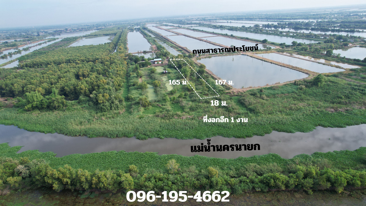 ขายที่ดิน 1 ไร่ 378 ตารางวา ติดแม่น้ำนครนายก อ.องครักษ์ ขายพร้อมโอน 9แสน9หมื่นบาท