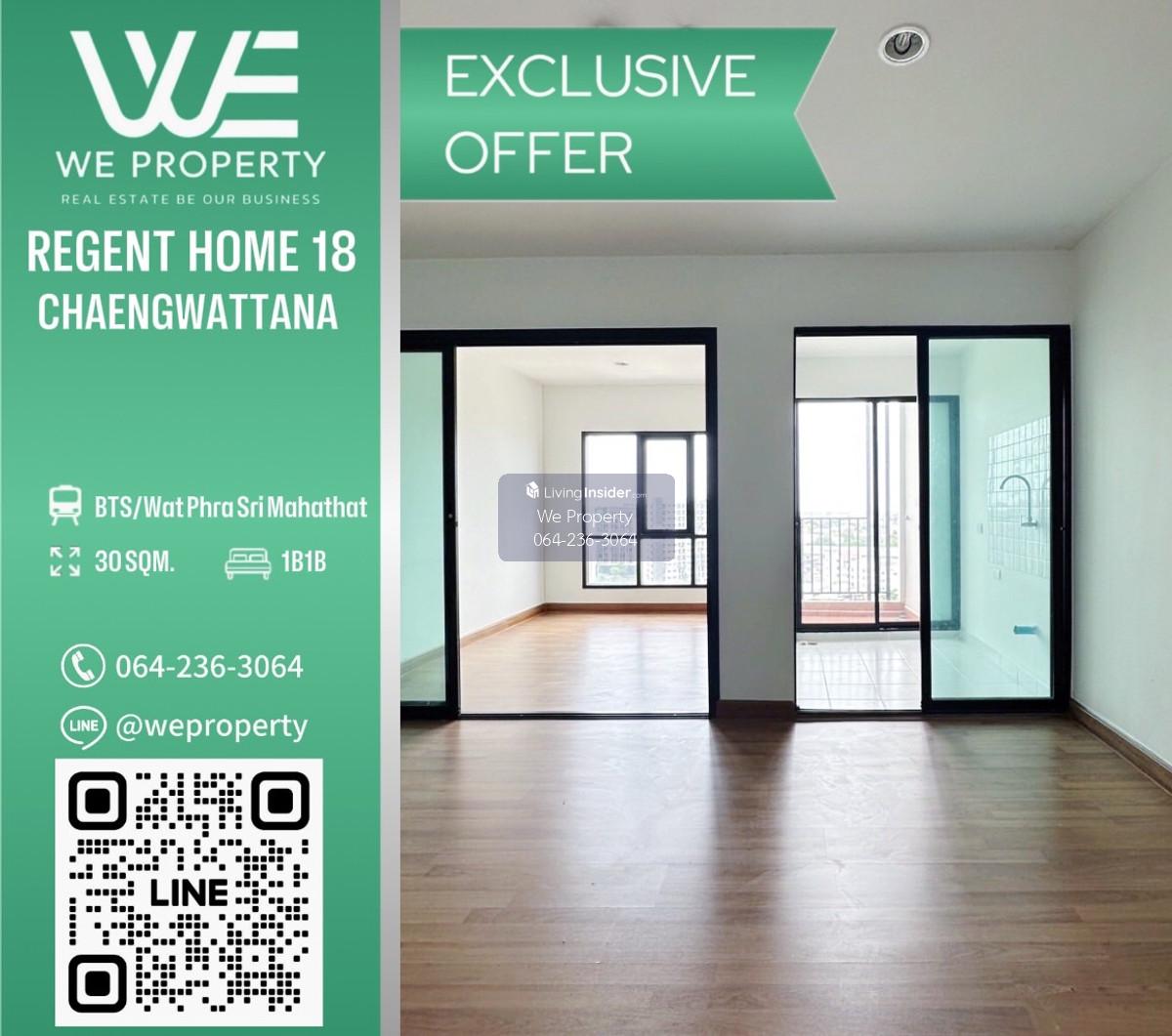 รหัสทรัพย์ (NC-JOB02) Regent home 18 chaengwattana - laksi (รีเจ้นท์ โฮม 18 แจ้งวัฒนะ - หลักสี่) 1 ห้องนอน 1 ห้องน้ำ ขนาด 30.29 ตร.ม. ชั้น 14 อาคาร F ห้องใหม่ไม่เคยเข้าอยู่ ทำเลดี ราคาดีที่สุด!!✨✨ ขาย