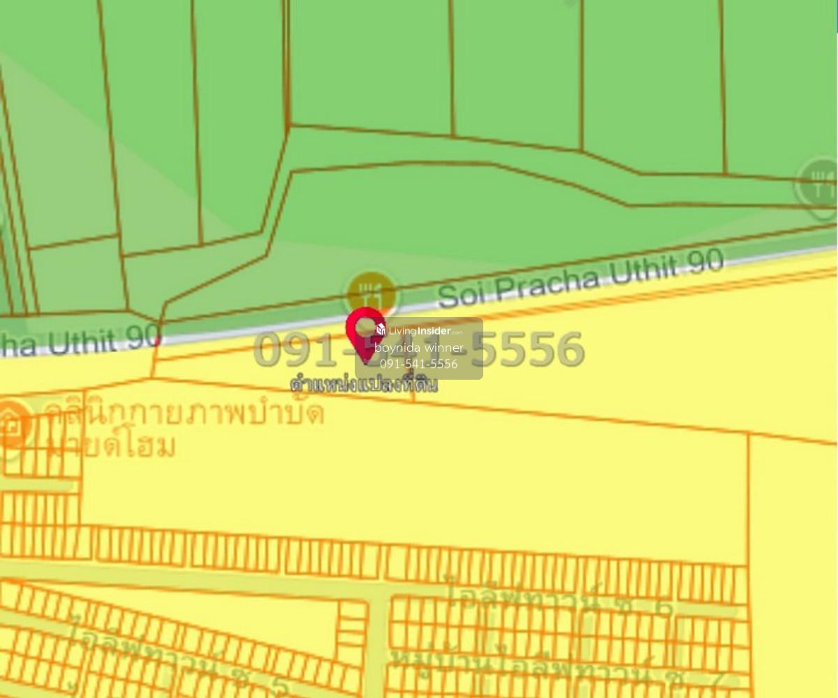 ขายที่ดิน ติดถนนประชาอุทิศ 90 หน้ากว้าง 122 ม. / ผังเมืองสีเหลือง เนื้อที่รวม 15-3-98 ไร่ แบ่งเป็น 2 แปลง (ตามรูป) แปลงที่ 1: 2 ไร่ แปลงที่ 2: 13-3-98 ไร่ ข้อมูลทรัพย์สิน * ประเภท: ที่ดินติดถนนใหญ่ * เนื้อที่รวม: 15-3-98 ไร่ * หน้ากว้าง: 122 เมตร * ความลึกสูงสุด: ~80 เมตร * ด้านหน้าที่ดินติดถนนประชาอุทิศ 90 ทิศเหนือ * ด้านหลังที่ดินติดหมู่บ้านไอลิฟทาวน์ ทิศใต้ * ผังเมือง: สีเหลือง (ประเภทที่อยู่อาศัยหนาแน่นน้อย/ชุมชนเมือง) ราคา 140,756,000 บาท ไร่ละ 8,800,000 บาท @22,000 บาท/ตร.ว. Tel 091~541~5556 Line : boynidabbb ทำเลที่ตั้ง ถนนประชาอุทิศ 90 – ใกล้ชุมชน, โครงการจัดสรร, โรงงานขนาดกลาง และเส้นหลักหลายสาย การเดินทาง - ถนนประชาอุทิศ 90 - ถนนสุขสวัสดิ์ - ถนนวงแหวนกาญจนาภิเษก - ทางด่วนกาญจนาภิเษก สถานที่สำคัญใกล้เคียง - หมู่บ้านไอลีฟทาวน์ - หมู่บ้านวิลลาจจิโอ ประชาอุทิศ 90 - รร.สารสาสน์ประชาอุทิศ - มหาวิทยาลัยเทคโนโลยีพระจอมเกล้าธนบุรี - รพ.บางปะกอก 3 - รพ.บางกอก 9 อินเตอร์ - บิ๊กซี ประชาอุทิศ - โลตัส ประชาอุทิศ - วิลเลจ ฮับ ประชาอุทิศ จุดเด่นของทรัพย์ - หน้ากว้างมาก 122 เมตร ติดถนนหลัก - ที่ดินมีความลึกประมาณ 80 เมตร - ใกล้ชุมชนและโครงการจัดสรรหลายโครงการ - ด้านหลังที่ดินติดหมู่บ้านไอลีฟทาวน์ - ผังเมืองสีเหลือง พัฒนาได้หลายรูปแบบ - ที่ดินเหมาะกับโครงการที่อยู่อาศัย - เหมาะกับซื้อเพื่อการลงทุนในอนาคต ราคา 140,756,000 บาท ไร่ละ 8,800,000 บาท @22,000 บาท/ตร.ว. Tel 091~541~5556 Line : boynidabbb