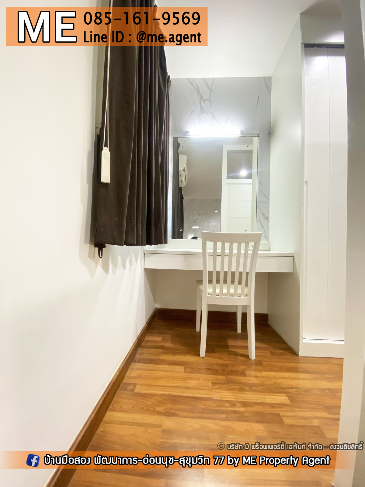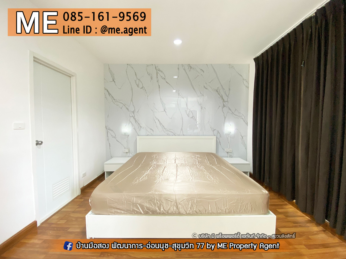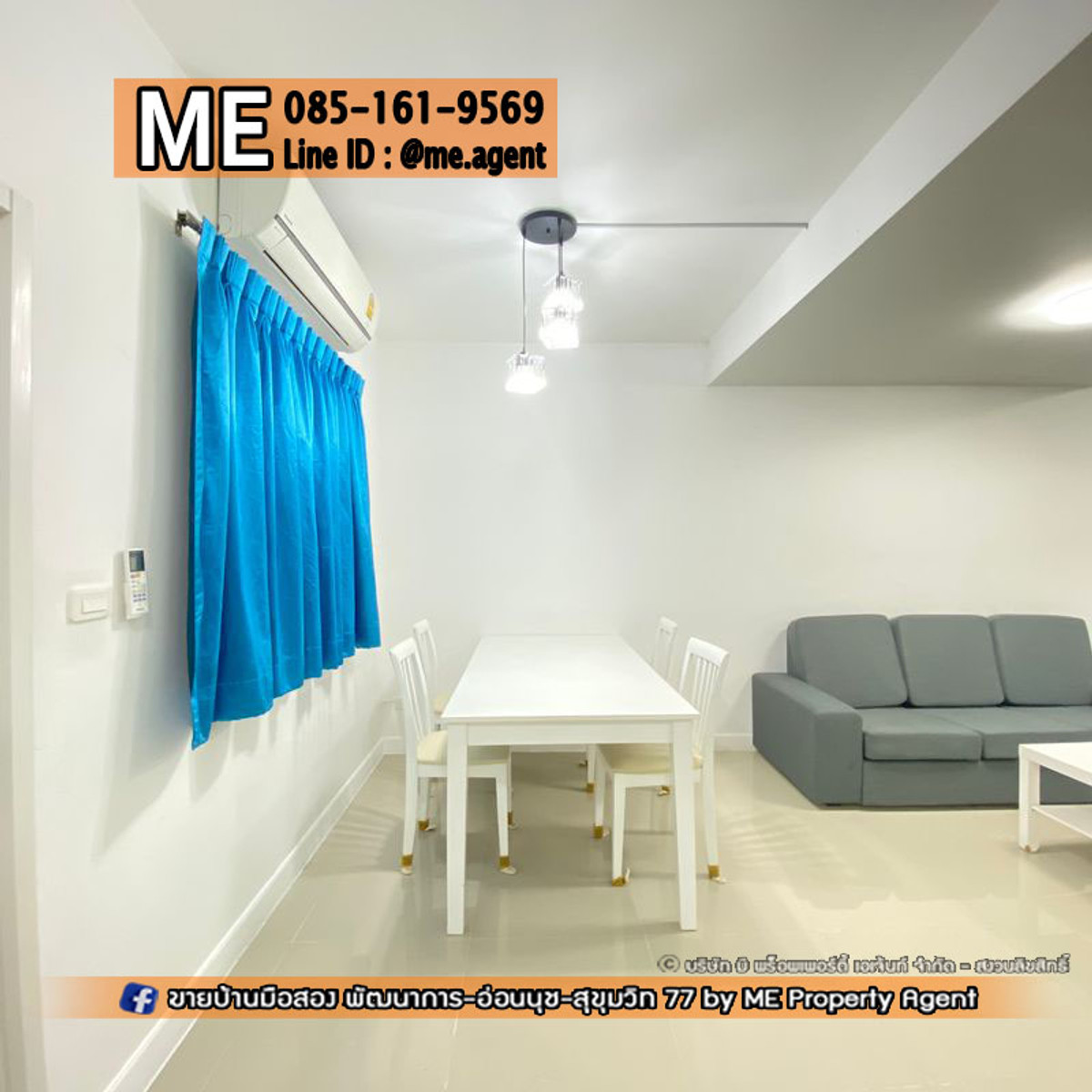 ขาย/ ให้เช่า ทาวน์เฮ้าส์ พฤกษาวิลล์ 73 พัฒนาการ 38 พร้อม Furniture เดินทางสะดวก ใกล้ สุขุมวิท ทองหล่อ เอกมัย โทร คลิกเพื่อดูเบอร์โทรติดต่อ (TA50-21) . ทำเลทอง ออกได้ 3 เส้นทางหลัก พัฒนาการ - อ่อนนุช - ศรีนครินทร์ ใกล้ BTS และ Airport Link อ่อนนุช . - ขนาดที่ดิน 21 ตรว. 120 ตรม. - 3 ห้องนอน 2 ห้องน้ำ - จอดรถในบ้านได้ 2 คัน - พร้อมเฟอร์นิเจอร์บิ้วอินทั้งห้องนอนและครัว - ตู้เย็น / เครื่องซักผ้า / เครื่องทำน้ำอุ่น / กลอนประตูดิจิตอล - มีครัวเบาในบ้านและครัวไทยหลังบ้าน - แอร์ 3 เครื่อง เช่า 27,000 บาท / เดือน ราคาเพียง 4.2 ล้านบาท ว่าง 6 ม.ค.69 . สนใจติดต่อเราได้ที่ ME Property Agent โทร คลิกเพื่อดูเบอร์โทรติดต่อ K.มุก (TH/ENG/JP) LINE : @me.agent IG : mepropertyagent TIKTOK : meagent YouTube : @meagent5131 ติดตามชมบ้านสวยๆ ได้ในเพจ ME ทัก Inbox FB : ขายบ้านมือสอง พัฒนาการ-อ่อนนุช-สุขุมวิท 77 by ME Property Agent . สิ่งอำนวยความสะดวกใกล้เคียง ทำเลดี เข้าออกได้หลายทาง ทั้ง ซ.อ่อนนุช 39 ศรีนครินทร์ 24 ซอยพัฒนาการ 30,32,38,44 ● Big C , Lotus ● พาราไดรซ์,ซีคอน ● ตลาดเอี่ยม, ตลาดรถไฟ ● ธัญญาพาร์ค ● โรงพยาบาล . สิ่งอำนวยความสะดวกในโครงการ มีสระว่ายน้ำ สวนสาธารณะ รปภ.24ชั่วโมง Fitness . #MEpropertyagent #ONEStopService #บ้านมือสอง #บ้านพัฒนาการ #บ้านอ่อนนุช #บ้านพร้อมอยู่ #ทาวน์เฮ้าส์อ่อนนุช #ทาวน์เฮ้าส์พัฒนาการ #บ้านเดี่ยวพร้อมอยู่ #บ้านเดี่ยว #เดอะปาล์ม #thepalm #พัฒนาการ38
