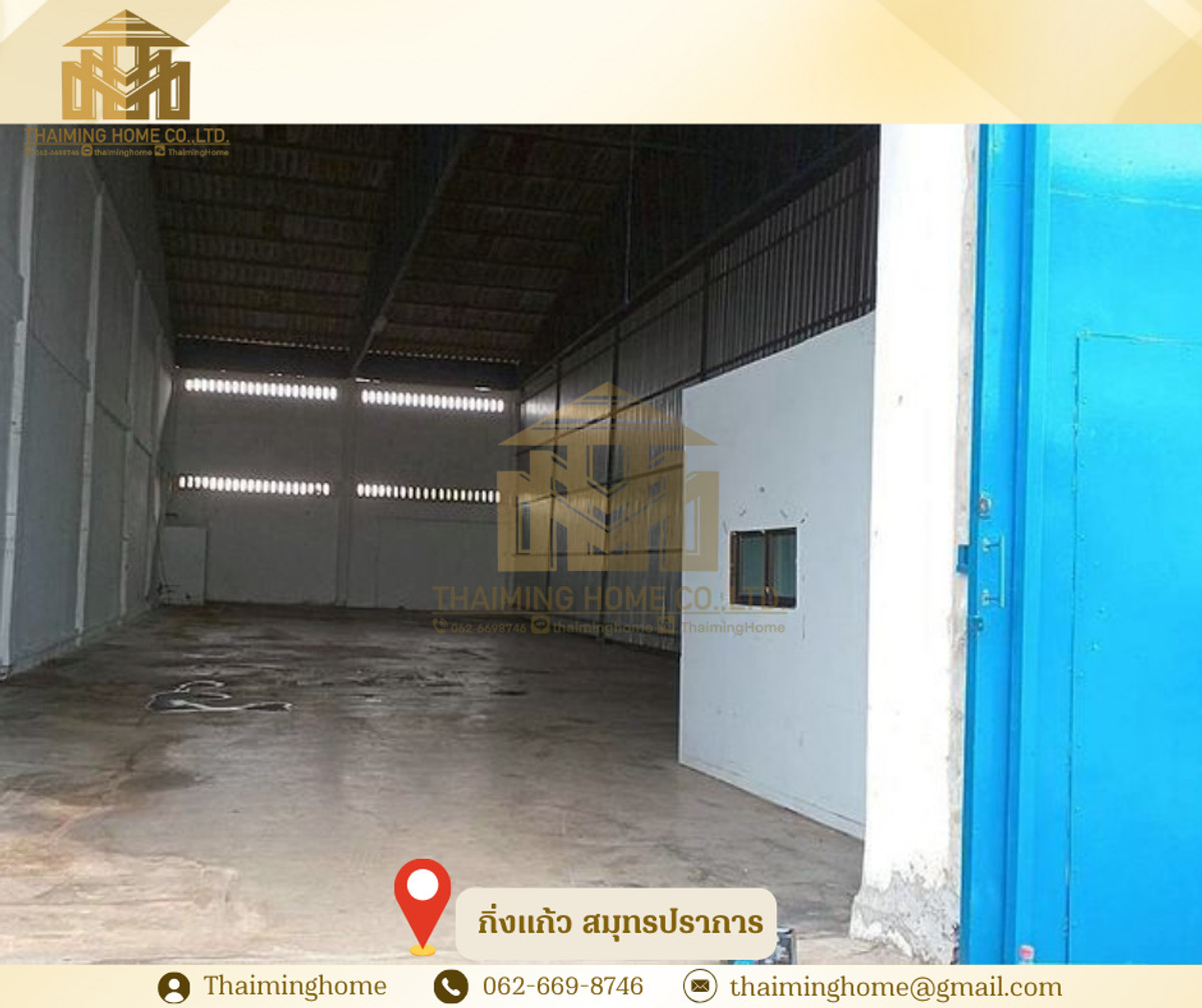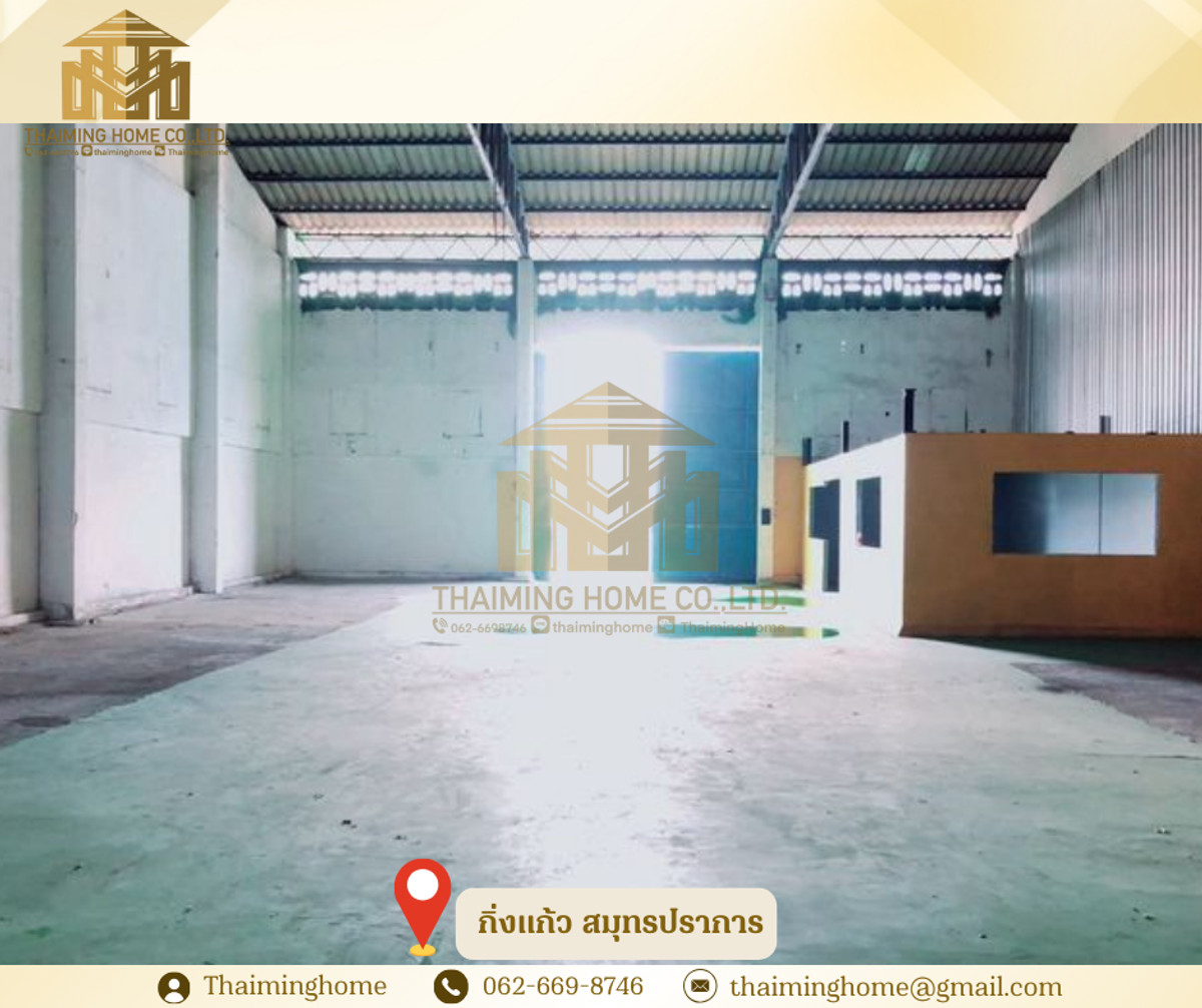 โกดังให้เช่าขนาด 300 ตรม. กิ่งแก้ว สมุทรปราการ (รหัสทรัพย์TW4-1081225) รายละเอียด - ใกล้สนามบินสุวรรณภูมิ ทำเลดี ติดถนนใหญ่ กิ่งแก้ว - มีจุดกลับรถหน้าโกดัง รถเทเลอร์40ฟุตเข้าออกสะดวก - มีรปภ cctv - พื