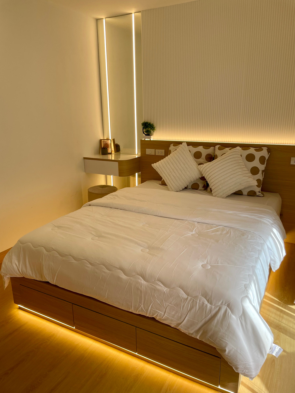 Vาย Bodin Sweet Home (บดินทร์ สวีท โฮม) บดินทร์ สวีท โฮม 36 ตรม ตกแต่งแบบ มินิมอล เพียง 1.69 ล้าน - ซอยรามคำแหง 43/1 - ลาดพร้าว 94 - ทาวน์อินทาวน์ รายละเอียด - เฟอร์นิเจอร์เป็นงานบิ้วอิน - กั้นห้องเป็