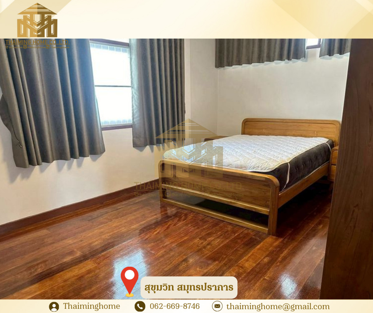ให้เช่าบ้านเดียว ขนาด 80 ตรว.สุขุมวิท สุมุทรปราการ (หัสทรัพย์TH4-171225) รายละเอียด - 4ห้องนอน 2ห้องน้ำ - กำแพง สูง ประตูบ้าน ระบบไฟฟ้า อัตโนมัติ - เฟอร์นิเจอร์ ตู้ เตียง โต๊ะ เครืองแป้ง - ตู้เย็น เตาแก๊ส ไมโครเวฟ - เครื่องซักผ้า ทีวี ชุดโชฟา - รับแขก ชุดโต๊ะ อาหาร แอร์ 5 ตัว - จอดรถ ภายในบ้านได้ 5 คัน และ หน้าบ้าน 2 คัน - มี พื้นที่ทำ สวนครัว สถานที่ใกล้เคียง - รถไฟฟ้า สุขุมวิท และ ศรีนครินทร์ - โรงพยาบาลสินแพทย์ ศรีนครินทร์ - เซ็นทรัล บางนา - ตลาดนัดรถไฟ ศรีนครินทร์ - เบสท์มินตัน - ตี๋น้อย สาขาศรีนครินทร์ - ซีคอน ศรีนครินทร์ - ตลาดนัดรถไฟศรีนครินทร์ - สวนหลวง ร.9 เงื่อนไขในการเช่า - สัญญาขั่นต่ำ 1ปี - เงินประกัน 2เดือน - ล่วงหน้า 1เดือน - ค่าเช่าเดือนละ 50,000บาท --------------------------------- บริษัท ไทยหมิง โฮม จำกัด Thaiming Home Co.,Ltd. 泰明房园 房产公司 ----------------------- Contact ติดต่อ : คลิกเพื่อดูเบอร์โทรติดต่อ Contact : คลิกเพื่อดูเบอร์โทรติดต่อ คุณหมิง(中文) Line ID: thaiminghome Line ID: @thaiminghome https://lin.ee/PkkHwYv Wechat : ThaimingHome E-mail : คลิกเพื่อดูอีเมล -----------------------