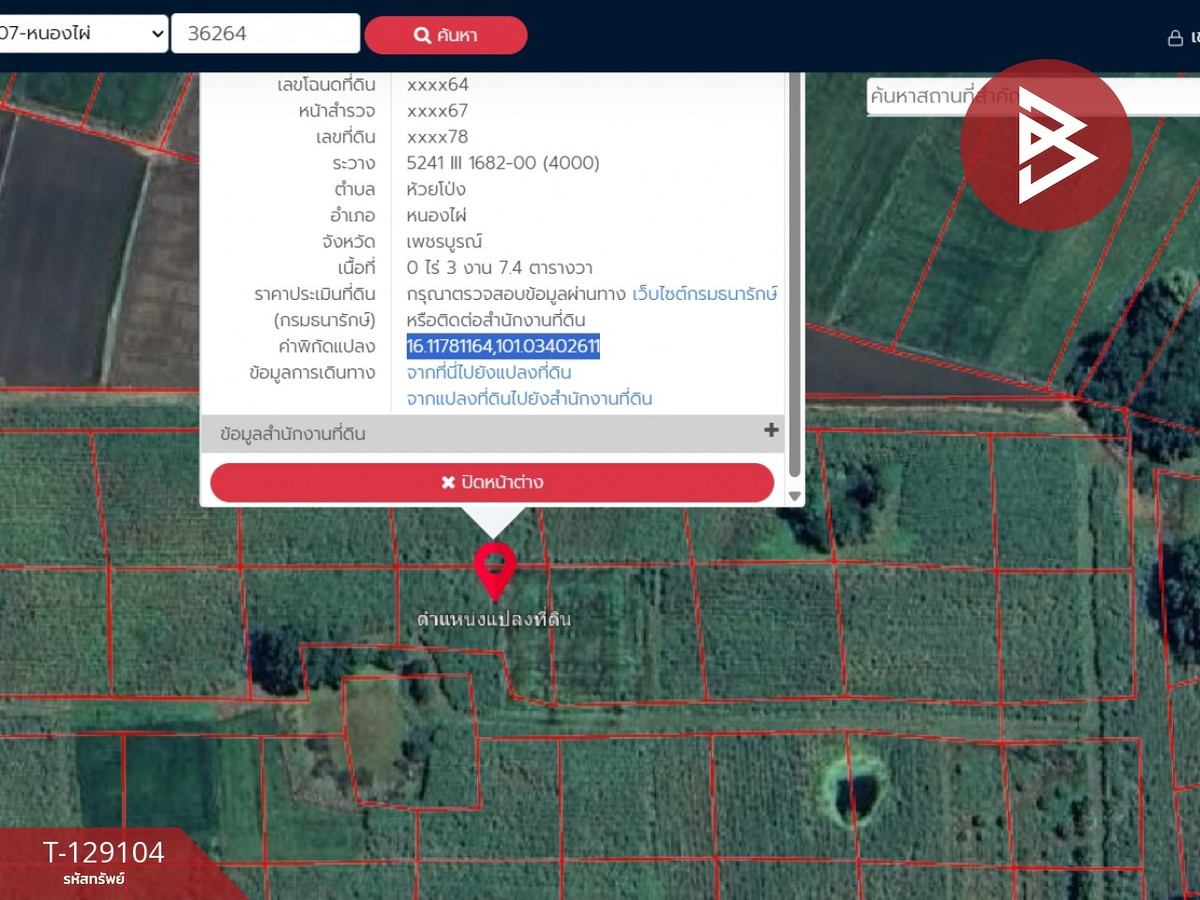 ที่ดิน : หนองไผ่ เพชรบูรณ์ ที่ตั้ง : ต.ห้วยโป่ง อ.หนองไผ่ จ.เพชรบูรณ์ รหัสทรัพย์ : T-129104 ประเภท : ที่ดิน เนื้อที่ : 3 งาน 7.4 ตารางวา กว้าง : 53.00 เมตร ลึก : 42.00 เมตร ทิศ : ใต้ รายละเอียดเพิ่มเติม : ที่ดินเปล่า มีน้ำไฟ ใกล้แหล่งชุมชน ราคา : 350,000 บาท ลิงค์แผนที่ : https://maps.google.com/?q=16.11781200,101.03402600 **เรามีบริการจัดสินเชื่อให้ฟรี พร้อมยินดีให้คำปรึกษา มีให้เลือกทุกธนาคาร** **พร้อมอัตราดอกเบี้ยพิเศษ และ วงเงินสูงสุด 90-100% ของราคาประเมิน** สนใจสอบถามข้อมูลเพิ่มเติม หรือ นัดชมบ้านได้ที่ Tel : คลิกเพื่อดูเบอร์โทรติดต่อ เก่ง (รหัสตัวแทน 2449) Line ID : sirichai2645 Callcenter : คลิกเพื่อดูเบอร์โทรติดต่อ สนใจดูทรัพย์อื่นๆ เพิ่มเติม มากกว่า 3,000 รายการ www.tb.co.th The Best Property Agent CO,.LTD. ผู้นำด้านธุรกิจนายหน้า ตัวแทนอสังหาริมทรัพย์ครบวงจร ด้วยความเป็นมืออาชีพ ใช้เทคโนโลยี และ นวัตกรรมที่สร้างสรรค์ เพื่อส่งมอบบริการที่ดีที่สุดเพื่อคุณ ให้บริการด้าน ซื้อ ขาย เช่า อสังหาริมทรัพย์