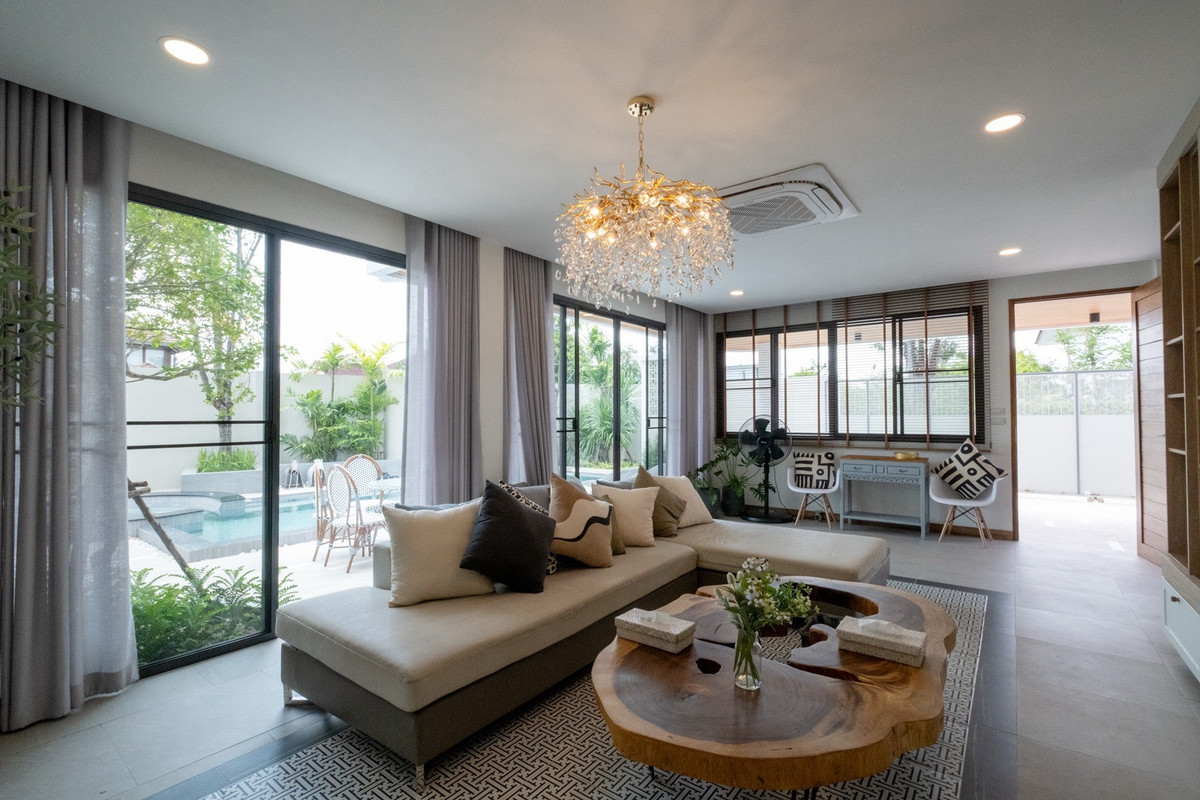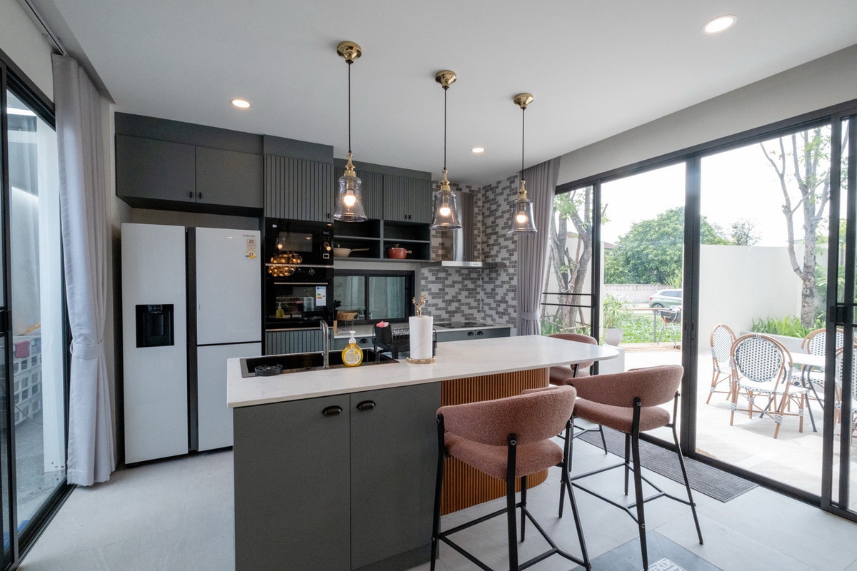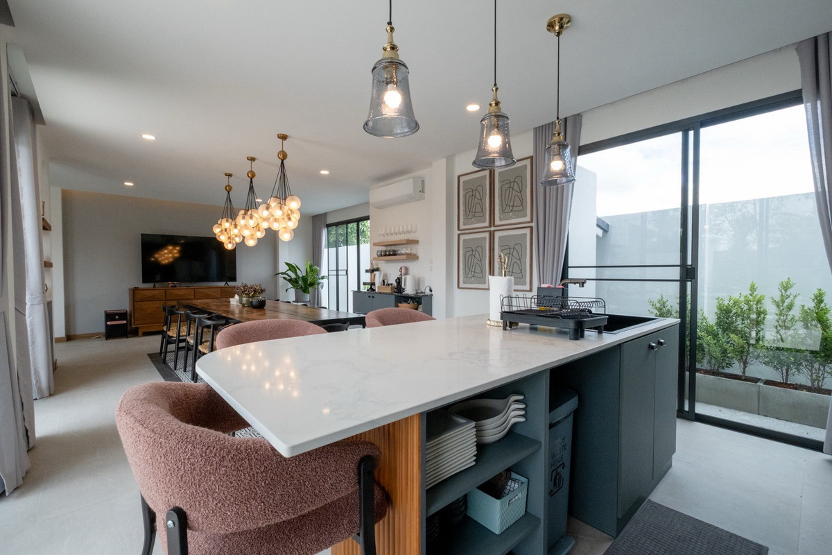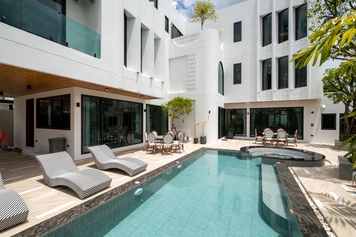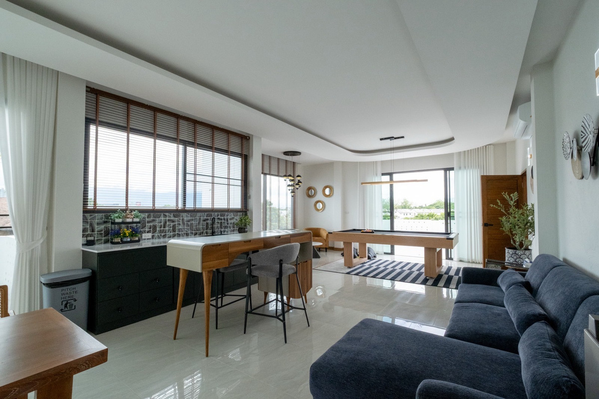 บ้านหรูใหม่เอี่ยม 3 ชั้น ทำเลศักยภาพใจกลางเชียงใหม่ วัสดุและการตกแต่งระดับไฮเอนด์ พร้อมขาย/ให้เช่า ราคาขาย: 23,000,000 บาท ราคาเช่า: 250,000 บาท/เดือน ห้องนอน: 8 ห้อง ห้องน้ำ: 10 ห้อง พื้นที่ใช้สอย: 800 ตร.ม. ขนาดที่ดิน: 436 ตร.ม. สัมผัสความหรูหราทันสมัยอย่างไร้ที่ติในบ้านเดี่ยวสร้างใหม่ 3 ชั้น หลังนี้ ตั้งอยู่ในจังหวัดเชียงใหม่ โดดเด่นด้วยสระว่ายน้ำส่วนตัว และทำเลริมสระน้ำที่เงียบสงบ ประดับด้วยดอกบัวและใบบัวอย่างเป็นธรรมชาติ บ้านตกแต่งครบด้วยเฟอร์นิเจอร์สไตล์โมเดิร์นระดับพรีเมียม ห้องนั่งเล่นขนาดใหญ่โดดเด่นด้วยเพดานสูงแบบดับเบิลโวลุ่ม สร้างบรรยากาศโอ่อ่าเป็นพิเศษ เพลิดเพลินกับความเป็นส่วนตัวในคอร์ทยาร์ดส่วนตัว เหมาะสำหรับการพักผ่อนหรือจัดสังสรรค์แบบเป็นกันเอง พื้นที่รับประทานอาหารแบบโอเพ่นแพลนเชื่อมต่อกับครัวสไตล์ตะวันตกทันสมัย เหมาะสำหรับการต้อนรับแขก ชั้นสามออกแบบมาเพื่อการพักผ่อนและความบันเทิงโดยเฉพาะ ประกอบด้วยพื้นที่อเนกประสงค์ ห้องนั่งเล่น ห้องน้ำ ระเบียงส่วนตัว บาร์สุดเก๋ และโต๊ะพูล มอบประสบการณ์การพักผ่อนอย่างสมบูรณ์แบบ ทำเลสะดวกสบาย เดินทางเข้าเมืองเชียงใหม่ได้ง่าย ใกล้แหล่งช้อปปิ้งชั้นนำอย่าง Central Festival และมีโชคมอลล์ รหัสทรัพย์: D1224 ติดต่อเรา: โทร: คลิกเพื่อดูเบอร์โทรติดต่อ อีเมล: คลิกเพื่อดูอีเมล