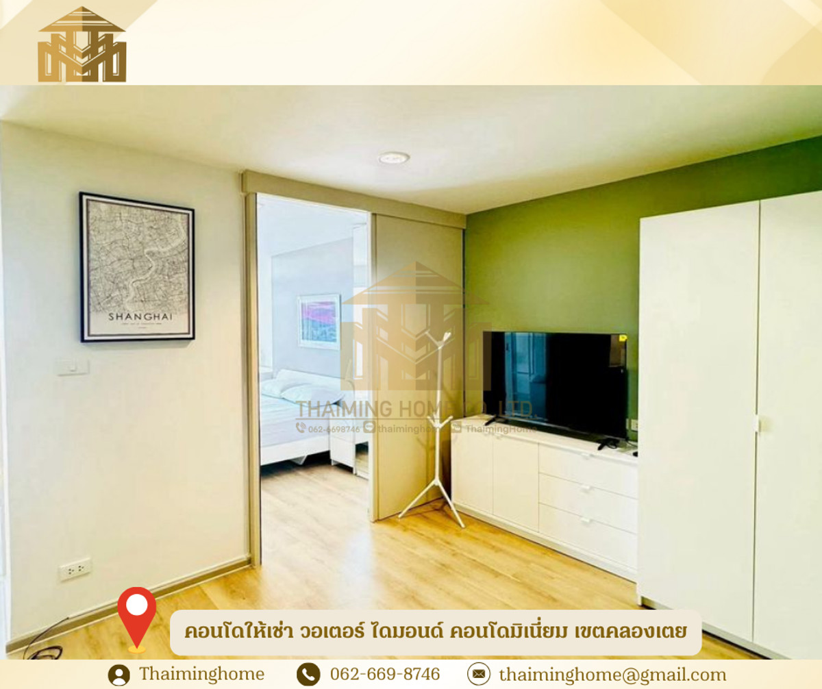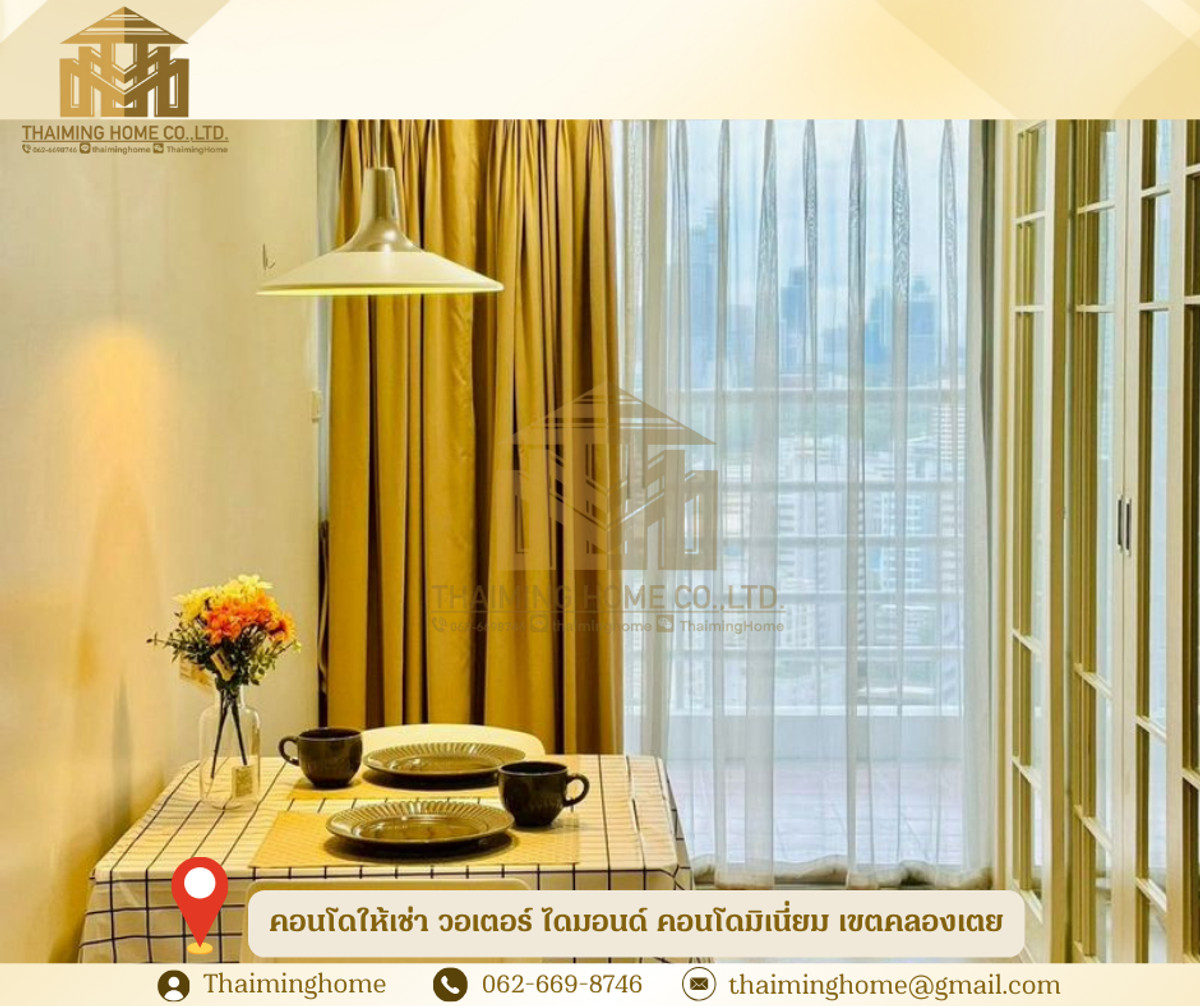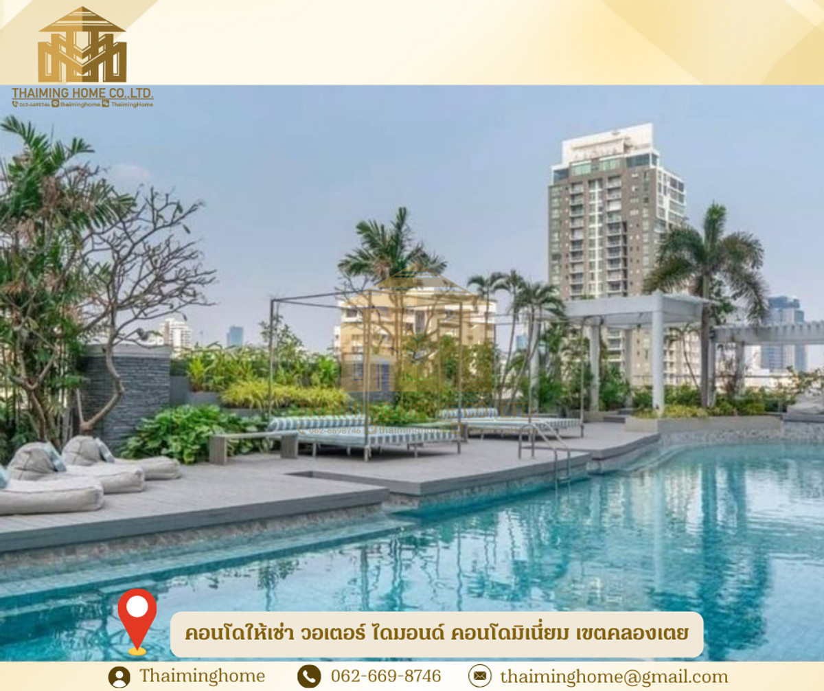 คอนโดให้เช่า วอเตอร์ ไดมอนด์ คอนโดมิเนี่ยม เขตคลองเตย กรุงเทพมหานคร(รหัสทรัพย์TC4-091225) รายละเอียดห้อง ประกาศจากเจ้าของห้อง - อพาร์ทเมนต์ 1 ห้องนอนกว้างขวาง วิวสวยงาม ชั้น 29 - ห้องสว่าง ชั้นสูง วิวสวย ไม่มีอะไรบัง แอร์เงียบ เครื่องซักผ้า - ขนาด 52 ตารางเมตร - ตั้งอยู่บนชั้น 29 วิวแม่น้ำและวิวเมืองสวยงาม พร้อมระเบียง - ห้องนั่งเล่นกว้างขวาง - ห้องครัว: เตาไฟฟ้า ตู้เย็น และไมโครเวฟ - สมาร์ททีวี 50 นิ้ว - มีเครื่องปรับอากาศอินเวอร์เตอร์ 2 เครื่อง (ประหยัดไฟ เงียบ และอุณหภูมิคงที่) ในห้องนั่งเล่นและห้องนอน - อาคารนี้ไม่อนุญาตให้เลี้ยงสัตว์ สิ่งอำนวยความสะดวกในอาคาร - สระว่ายน้ำ - สวน - ฟิตเนส - สนามเด็กเล่น สถานที่ใกล้เคียง - เดิน 600 เมตร ถึงสถานี BTS พร้อมพงษ์ หรือ BTS ทองหล่อ - เอ็มโพเรียม เอ็มควอเทียร์ สวนเบญจสิริ เอ็มสเฟียร์ ทองหล่อ ย่านดีมาก - ตลาดคลองเตย - เซ็นทรัลเวิลด์ เงื่อนไขในการเช่า - สัญญาขั่นต่ำ 1ปี - เงินประกัน 2เดือน - ค่าเช่าล่วงหน้า 1เดือน - ค่าเช่า 26,000 บาทต่อเดือน --------------------------------- บริษัท ไทยหมิง โฮม จำกัด Thaiming Home Co.,Ltd. 泰明房园 房产公司 ----------------------- Contact ติดต่อ : คลิกเพื่อดูเบอร์โทรติดต่อ Contact : คลิกเพื่อดูเบอร์โทรติดต่อ คุณหมิง(中文) Line ID: thaiminghome Line ID: @thaiminghome https://lin.ee/PkkHwYv Wechat : ThaimingHome E-mail : คลิกเพื่อดูอีเมล -----------------------