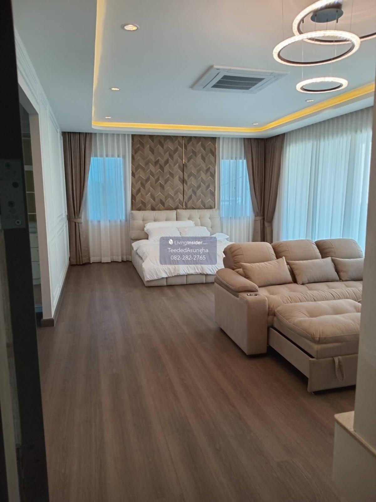 ให้เช่า 191ตรว 4นอน5น้ำ บ้านเดี่ยว 2 ชั้น The Palm Bangna Wongwaen (สัญญาเช่าขั้นต่ำ 1 ปี นะคะ) เช่า 250,000บาท/เดือน **** วางเงินประกัน 2 เดือน มัดจำล่วงหน้า 1 เดือน **** **** รวมเป็น 3 เดือน = 750,000พร้อมย้ายเข้าได้เลยค่ะ ****** - บ้านเดี่ยว 2 ชั้น (ในซอยมีแค่ 2หลัง หน้าโครงการ) - พื้นที่ใช้สอย 452 ตรม. พื้นที่ดินของบ้าน 191 ตรว. - 4 ห้องนอน 5 ห้องน้ำ + 1 ห้องแม่บ้าน - พื้นที่ชั้นบนมีห้องทำงานและห้องนั่งเล่นอีก 2 ห้อง - พี่จอดรถในร่ม 4 คันแต่สามารถจอดซ้อนคันได้ 8 คัน++ สิ่งอำนวยความสะดวก - บ้านหลังนี้บิวอินเฟอร์นิเจอร์พร้อมทุกห้องพร้อมผ้าม่านและโคมไฟอย่างดี - พร้อมติดแอร์ 8 เครื่อง , เครื่องทำน้ำร้อนและเครื่องทำน้ำอุ่นครบทุกห้อง - ห้องครัวบิวอินตู้อบเตาไฟฟ้าพร้อมเครื่องดูดควันและตู้เย็นเรียบร้อย + ครัวนอก - ทีวี 5 เครื่องครบทุกห้องนอน (75" 3ตัว) - ที่นอนทุกห้องพร้อม ที่นอนและชุดเครื่องนอนใหม่ ติดต่อสอบถามเข้ามาได้เลยนะคะ คุณเสาวลักษณ์ o คลิกเพื่อดูเบอร์โทรติดต่อ65 ( เบอร์โทร T e l . ศูนย์แปดสอง สองแปดสอง สองเจ็ดหกห้า ) แอดไลน์ : @saowaluk.an (ใส่ @ ข้างหน้าด้วยนะคะ) เว็บไซต์ : www.livinginsider.com/public_profile/1/CIbbIj.html เพจ : www.facebook.com/teededasungha **ดำเนินการยื่นสินเชื่อ ดูแลตลอดการซื้อขาย **รับฝากขาย ปล่อยเช่า คอนโด บ้าน ที่ดินและอสังหาริมทรัพย์ทุกชนิด ที่ตั้ง : เดอะปาล์ม บางนา วงแหวน ถ.สุขาภิบาล 2 แขวงดอกไม้ เขตประเวศ กรุงเทพมหานคร 10250 ขนาด : พื้นที่ 191 ตรว. ,พื้นที่ใช้สอย ประมาณ 452 ตร.ม. ราคา : 250,000บาท/เดือน | ขาย 30ล้าน