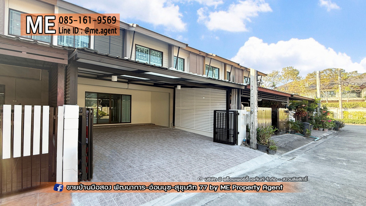 ด่วน! โปรโมชั่น ส่งท้ายปีเก่า บ้านใหม่ ไฉไลกว่าเดิม ขาย ทาวน์เฮ้าส์ ทำเลสุดฮอต รีโนเวทใหม่ทั้งหลัง พฤกษาวิลล์ 57 พัฒนาการ 32 ใกล้เอกมัย ทองหล่อ สุขุมวิท โทร คลิกเพื่อดูเบอร์โทรติดต่อ (TB62-22) . บ้านใหม่ หลังใหญ่ พร้อมอยู่ ราคาดี ปรึกษาฟรี! ทำเลดี เดินทางสะดวก ใกล้ Airport link สถานีหัวหมาก ใกล้ BTS สถานีอ่อนนุช . - เนื้อที่ 22.2 ตร.วา. พื้นที่ใช้สอย 130 ตร.ม. - 3 ห้องนอน 2 ห้องน้ำ - 1 ห้องครัวต่อเติมใหม่ - 2 ที่จอดรถ - แอร์ 3 เครื่อง - หน้าบ้านหันทาง ทิศเหนือ ร่มทั้งวัน >>>จุดเด่นของบ้าน<<< - รีโนเวทใหม่ - ทาสีใหม่ทั้งภายนอก และภายใน - ปูพื้น SPC กันน้ำ กันปลวก อย่างดี - ต่อเติมครัวไทยพร้อมใช้งาน เพื่อเพิ่มพื้นที่ใช้สอยภายในบ้าน - ปูพื้นกระเบื้องโรงจอดรถใหม่ - เปลี่ยนสุขภัณฑ์ทั้งหลัง . ราคา 4,650,000 บาท (ค่าโอน 50/50) . สนใจติดต่อเราได้ที่ ME Property Agent โทร คลิกเพื่อดูเบอร์โทรติดต่อ K.มุก LINE : @me.agent IG : mepropertyagent TIKTOK : meagent YouTube : @meagent5131 ติดตามชมบ้านสวยๆ ได้ในเพจ ME ทัก Inbox FB : ขายบ้านมือสอง พัฒนาการ-อ่อนนุช-สุขุมวิท 77 by ME Property Agent . ส่วนกลาง – สวนสาธารณะ – คลับเฮาส์ – สระว่ายน้ำ – ฟิตเนส – รปภ., CCTV . สถานที่ใกล้เคียง 1. โรงพยาบาลวิภาราม 2. โรงพยาบาลกรุงเทพ 3. The mallบางกะปิ 4. Lotus บางกะปิ 5. Max Value แยกพัฒนาการ 6. Paradise Park 7. มหาวิทยาลัยรามคำแหง 8. มหาวิทยาลัยอัสสัมชัญ 9. มหาวิทยาลัยเกษมบัณฑิต 10. สำนักงานเขตสวนหลวง #MEpropertyagent #ONEStopService #บ้านมือสอง #บ้านใหม่ #บ้านรีโนวเวทใหม่ #บ้านพร้อมอยู่ #ขายด่วน #ทาวน์โฮม #อ่อนนุช #ราคาถูก #ขายด่วน # Pruksa #พฤกษาวิลล์57 #ทาวน์เฮ้าส์2ชั้น #รีวิวบ้าน #ใกล้รถไฟฟ้า #พัฒนาการ #เขตสวนหลวง #ใกล้ทางด่วนพัฒนาการ #ทาวน์เฮ้าส์อ่อนนุช #ทาวน์เฮ้าส์พัฒนาการ
