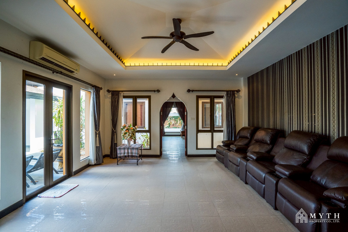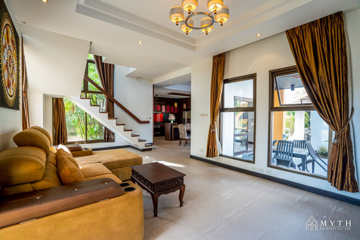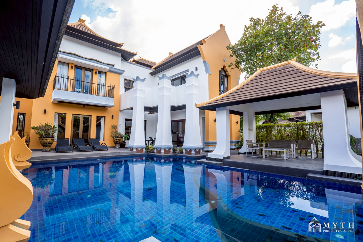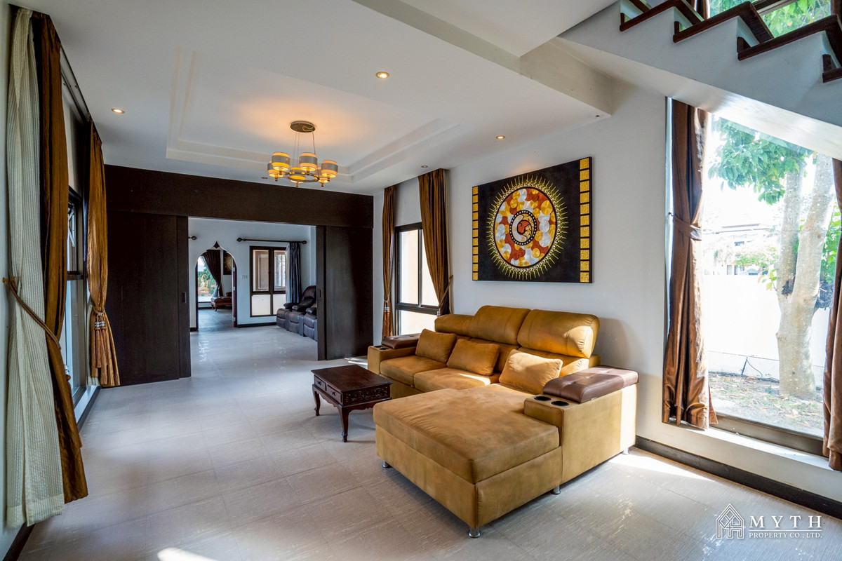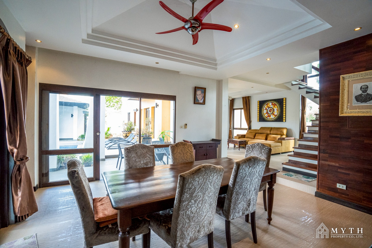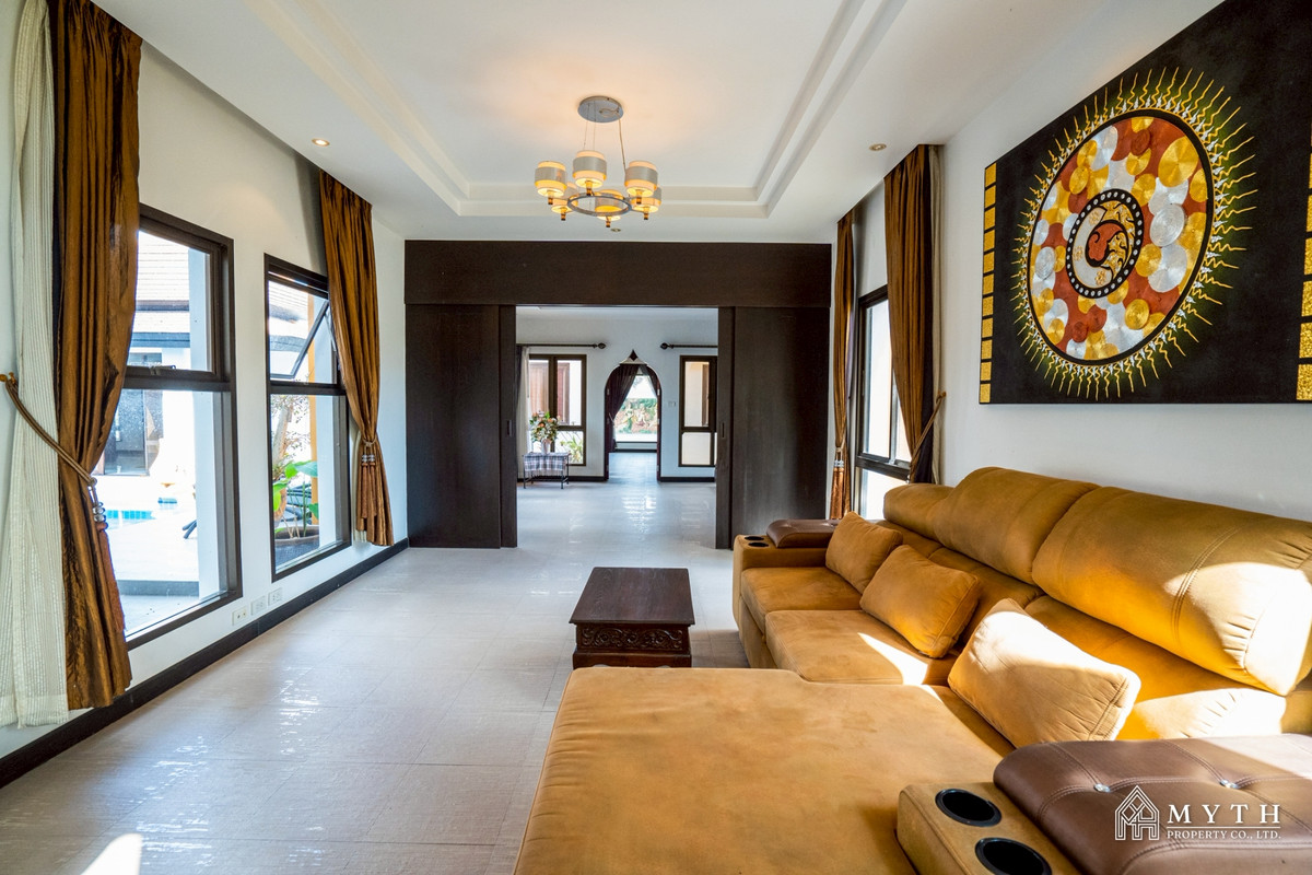 บ้านพร้อมอยู่บนที่ดินขนาดใหญ่ ใช้สอยได้เต็มพื้นที่ ฟังก์ชันครบ ตอบโจทย์ทั้งการอยู่อาศัยและการลงทุน บรรยากาศดี น่าอยู่ - 4 ห้องนอน 3 ห้องน้ำ - 1 ห้องนั่งเล่น - 1 ห้องครัว - 1 ห้องทำงาน - ที่ดินขนาด 2 งาน 65.6 ตารางวา - เฟอร์นิเจอร์ครบพร้อมเครื่องใช้ไฟฟ้าที่จำเป็น - สระว่ายน้ำส่วนตัว - ที่จอดรถ ราคา 22,990,000 บาท ชื่อไทย