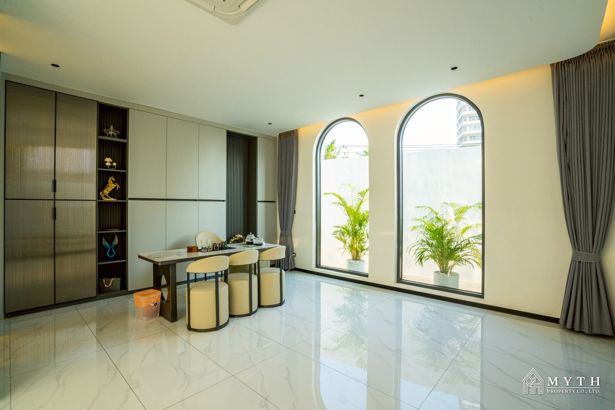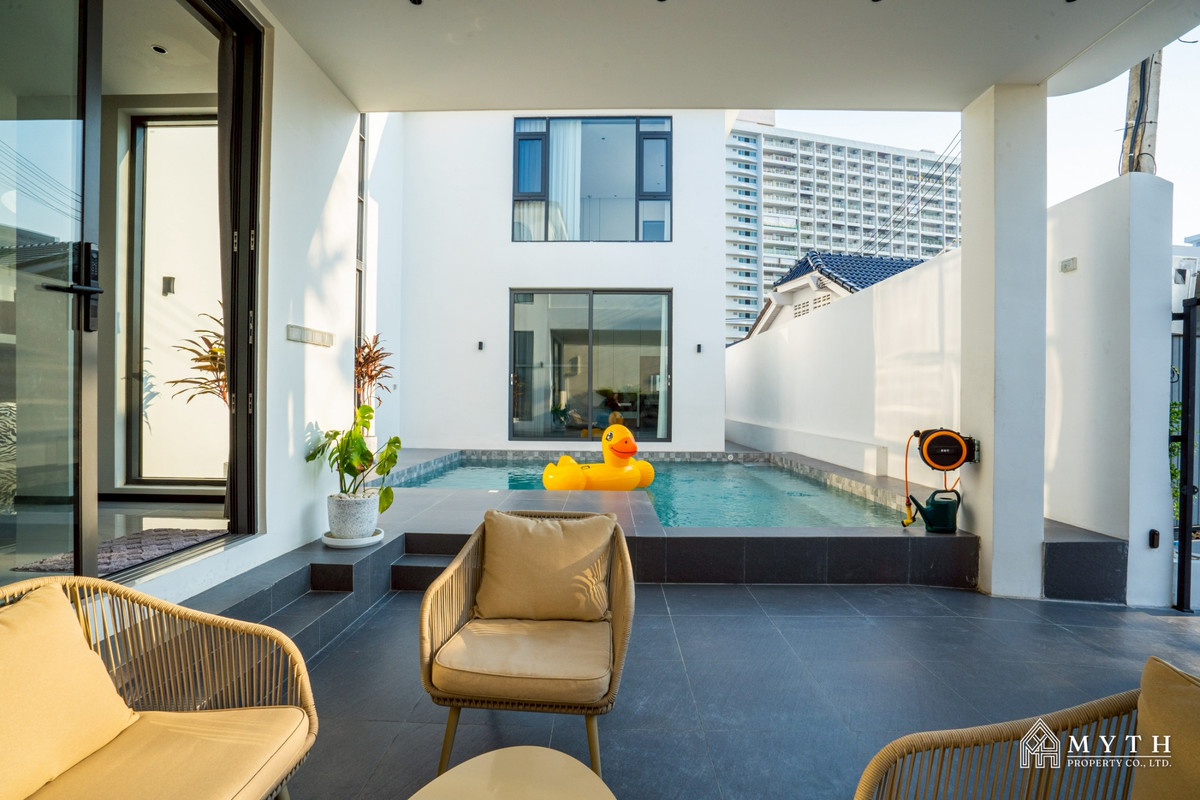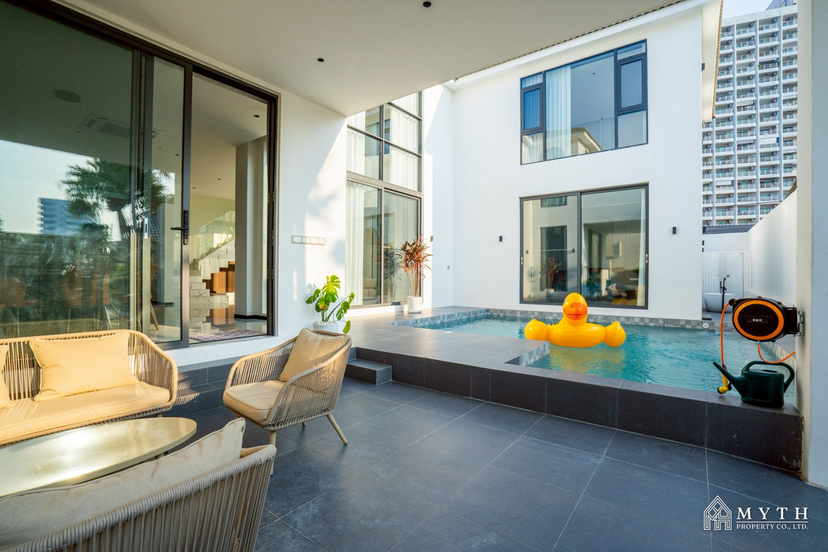 สัมผัสความเป็นส่วนตัวเพียง 300 เมตรจากชายหาด บ้านสองชั้นรีโนเวทใหม่ในโครงการ Jomtien Condotel ตกแต่งครบพร้อมเข้าอยู่ มอบบรรยากาศเงียบสงบ พร้อมทางเดินลงชายหาดโดยตรง ตั้งอยู่ในทำเลที่ดีที่สุดแห่งหนึ่งของจอมเทียน. - 4 ห้องนอน 5 ห้องน้ำ - ที่ดินขนาด 300 ตารางเมตร - พื้นที่ใช้สอย 360 ตารางเมตร - เฟอร์นิเจอร์ครบพร้อมเครื่องใช้ไฟฟ้าที่จำเป็น - สระว่ายน้ำส่วนตัว - ที่จอดรถ ราคา 23,900,000 บาท ชื่อบริษัท