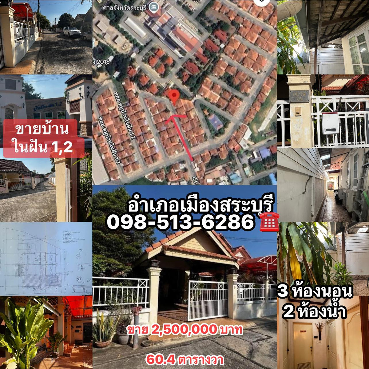 ประกาศขายบ้านเดี่ยวชั้นเดียว หมู่บ้านในฝัน 1 , 2 ถนนเทศบาล 5 ตำบลปากเพรียว อำเภอเมืองสระบุรี จังหวัดสระบุรี ขายในราคา 2,500,000 บาท ️ โทร ดูบ้าน ซื้อบ้าน นายหน้าพี่เกริก คลิกเพื่อดูเบอร์โทรติดต่อ มือถือ ตัวบ้านตั้งอยู่ในทำเลใจกลางเมืองสระบุรี เดินทางสะดวก ใกล้โรงเรียนอนุบาล และโรงเรียนสระบุรีวิทยาคม ระยะทางประมาณ 3.6 กิโลเมตร ใช้เวลาเดินทางประมาณ 7 นาที รายละเอียดทรัพย์สิน ️ https://www.facebook.com/share/v/1A42hUaQTP/?mibextid=wwXIfr ️ https://www.facebook.com/share/p/1787cCq13x/?mibextid=wwXIfr • บ้านเดี่ยวชั้นเดียว • 3 ห้องนอน • 2 ห้องน้ำ • 1 ห้องทำงาน • 1 ห้องรับแขก • 1 ห้องครัว • 1 ห้องซักล้าง • จอดรถภายในบ้านได้ 2 คัน หรือจอดหน้าบ้านได้ 2 คัน • ถนนในโครงการกว้าง เดินรถสะดวก • เอกสารสิทธิ์โฉนด ขนาดพื้นที่ • เนื้อที่ดิน 60.4 ตารางวา • ขนาดตัวบ้าน 7 x 9 เมตร รวมพื้นที่ใช้สอยภายใน 63 ตารางเมตร • พื้นที่รวมทั้งหมดโดยประมาณ 241.6 ตารางเมตร รหัสทรัพย์ 19/78 ซอย7 หมู่บ้านในฝัน3 ใกล้โรงเรียนเทศบาล 5 (วัดดาวเรือง) อำเภอเมืองสระบุรี สระบุรี 2 นาที 700เมตร บ้านหลังนี้ห่างโรงเรียนอนุบาลสระบุรี 4 นาที 2.5 กิโลเมตร ตลาดการเคหะ 2.1 กิโลเมตร 4 นาที บ้านหลังนี้ห่างสนามกีฬาจังหวัดสระบุรีเพียง ขับรถ 5 นาที 3.3 กิโลเมตรประกาศขายบ้านมือสองสภาพดี บ้านมือสองสภาพดี พร้อมเข้าอยู่ เหมาะสำหรับครอบครัวที่ต้องการทำเลใกล้เมือง เดินทางสะดวกและสภาพแวดล้อมดี ️ โทร ดูบ้าน ซื้อบ้าน นายหน้าพี่เกริก คลิกเพื่อดูเบอร์โทรติดต่อ มือถือ โทร. ติดต่อดูบ้าน ติดต่อ คุณอัน ณัฐพัชร์ วีรเศรฐกุล คลิกเพื่อดูเบอร์โทรติดต่อ แผนที่ พิกัดหลังนี้ ️ https://maps.app.goo.gl/XveCUXNifZPrtEgQ8?g_st=ipc