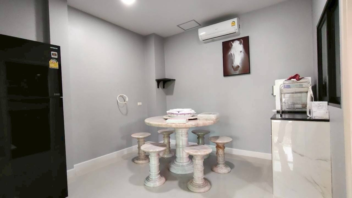 ขาย / ให้เช่า บ้านเดี่ยว 2 ชั้น พร้อมสวนส่วนตัว หมู่บ้านแอริ พระราม 2 (Aree Rama 2) ทำเลศักยภาพ ใกล้เลียบด่วนพระราม 2 เข้า–ออกสะดวก 3 เส้นทาง ราคาเช่า: 79,000 บาท/เดือน ราคาขาย: 17,000,000 บาท ⸻ รายละเอียดทรัพย์ • ขนาดที่ดิน 84.6 ตารางวา • พื้นที่ใช้สอย 270 ตารางเมตร • 5 ห้องนอน • 5 ห้องน้ำ • จอดรถได้ 2 คัน • ระบบรักษาความปลอดภัย 24 ชั่วโมง ⸻ รายละเอียดภายในบ้าน ชั้นที่ 1 • Built-in สไตล์ Modern ทั้งหลัง • เครื่องปรับอากาศฝังฝ้า 4 ทิศทาง ขนาด 42,000 BTU • ห้องอเนกประสงค์ (สามารถปรับเป็นห้องนอนได้) • ห้องรับประทานอาหาร พร้อมโต๊ะหินอ่อนและจานหมุน • เครื่องกรองน้ำ COWAY • ครัวขนาดใหญ่ พร้อมอุปกรณ์ครบครัน • เตาแก๊ส พร้อมฮูดดูดควัน • เตาไฟฟ้า Built-in • เตาอบ Built-in รองรับการทำเบเกอรี่ ชั้นที่ 2 • Master Bedroom ขนาดใหญ่ • เครื่องปรับอากาศ 4 ทิศทาง ขนาด 36,000 BTU • Walk-in Closet • ห้องน้ำในตัว พร้อมอ่างอาบน้ำ • สุขภัณฑ์ระบบไฟฟ้า • 2 ห้องนอน พร้อมห้องน้ำในตัว • เครื่องปรับอากาศขนาด 12,000 BTU ทุกห้อง • 1 ห้องอเนกประสงค์ • ปรับเป็นห้องทำงาน หรือห้องนอนเพิ่มเติมได้ ⸻ พื้นที่ภายนอก • พื้นที่หลังบ้าน จัดเป็นมุมพักผ่อนหรือสังสรรค์ • เทอเรสกลางสวน บรรยากาศร่มรื่น • พื้นที่ข้างบ้าน ลมดี อากาศถ่ายเท • ห้องแม่บ้าน พร้อมห้องน้ำในตัว (สามารถปรับเป็นห้องซักผ้าได้) ⸻ จุดเด่นเพิ่มเติม • มีเมนไฟรองรับการติดตั้งเครื่องชาร์จรถยนต์ไฟฟ้า (EV Charger) • ติดตั้งเครื่องปรับอากาศทุกห้อง • เหมาะสำหรับผู้พักอาศัยที่รักบ้านและดูแลทรัพย์สินอย่างดี • บ้านพร้อมเข้าอยู่ทันที ⸻ สอบถาม / นัดชมบ้าน โทร. คลิกเพื่อดูเบอร์โทรติดต่อ พัฒน์ โทร. คลิกเพื่อดูเบอร์โทรติดต่อ เด่น Line ID: @goldstoneagent บ้านสวย ทำเลดี ฟังก์ชันครบ เหมาะทั้งอยู่อาศัยและลงทุน นัดชมบ้านได้ทุกวัน โดยนัดหมายล่วงหน้าครับ