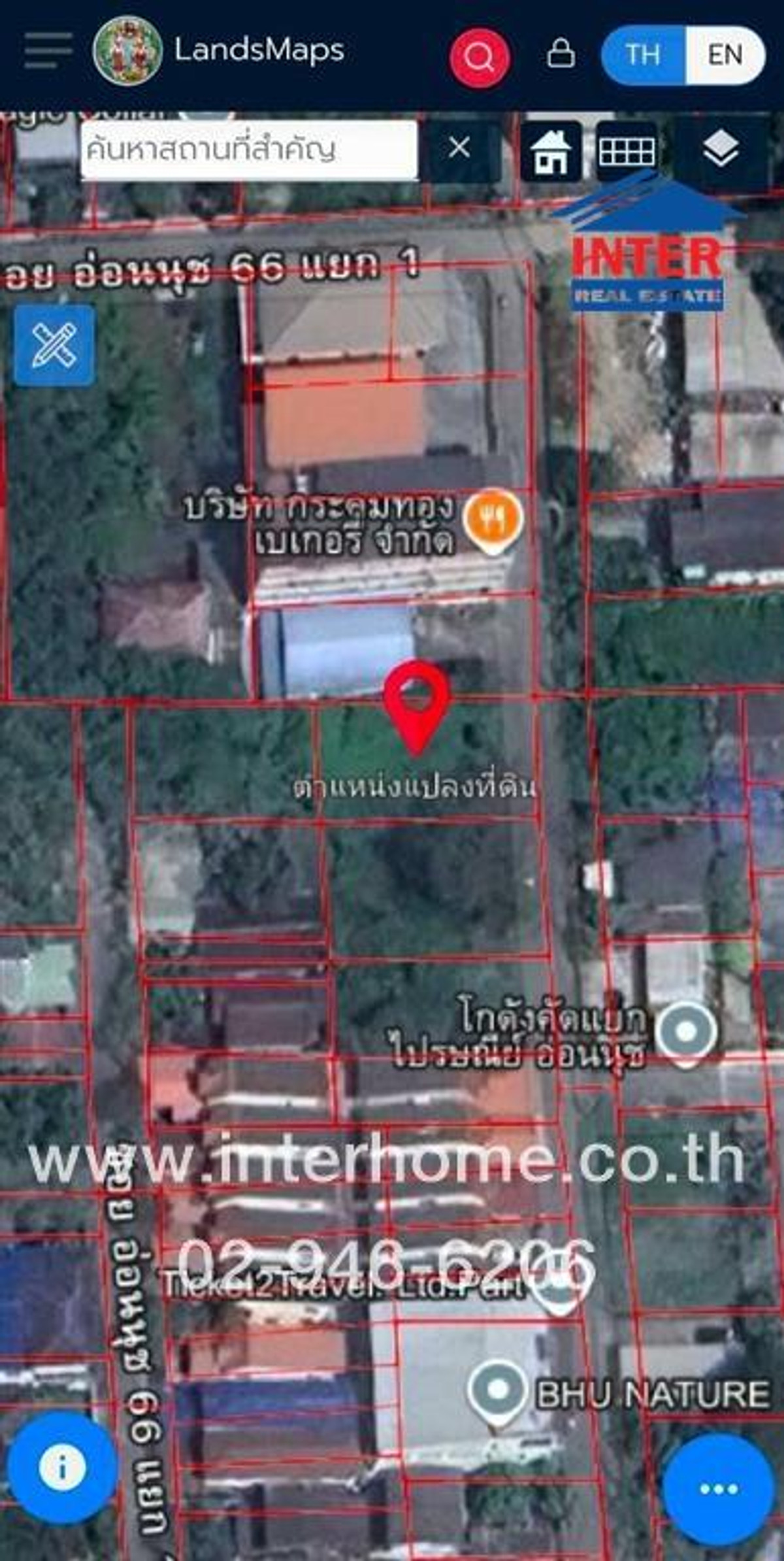 คุณ ปั่น อินทะอุ่นวงศ์ (ปั่น) เบอร์ติดต่อ : คลิกเพื่อดูเบอร์โทรติดต่อ Office : คลิกเพื่อดูเบอร์โทรติดต่อ สอบถามทางไลน์ https://lin.ee/xTo07Pn Line ID: @interhome รหัสอสังหาริมทรัพย์ : 65779 ขนาด 80 ตร.ว. ที่ตั้ง : ที่ดิน ซอยอ่อนนุช66 แยก1 ถ.ศรีนครินทร์ เขตประเวศ กรุงเทพมหานคร รายละเอียด ใกล้ห้างสรรพสินค้าซีคอนสแควร์ เดอะไนน์ เซ็นเตอร์ พระราม 9 ตลาดนัดรถไฟศรีนครินทร์ ขายที่ดินเปล่า ซอยอ่อนนุช66 แยก1 ถนนศรีนครินทร์ ถนนอ่อนนุช แขวงประเวศ เขตประเวศ กรุงเทพมหานคร หน้ากว้างที่ดินโดยประมาณ 13 เมตร ลึกประมาณ 24 เมตร เหมาะสำหรับทำเป็นที่พักอาศัย ออฟฟิศ ที่ดินถมแล้ว รูปแปลงที่ดินเป็นสี่เหลี่ยมผืนผ้า ที่ดินอยู่ในเขตพื้นที่สีเหลือง ทำเลดี สถานที่ใกล้เคียง : ใกล้ห้างสรรพสินค้าซีคอนสแควร์ เดอะไนน์ เซ็นเตอร์ พระราม 9 ตลาดนัดรถไฟศรีนครินทร์พาราไดซ์พาร์ค โรงพยาบาลสินแพทย์ ศรีนครินทร์ โรงพยาบาลวิภาราม สวนหลวงร 9 แม็กซ์แวลู่ ซุปเปอร์มาร์เก็ตสาขาพัฒนาการ โรงพยาบาลศรีนครินทร์ โรงพยาบาลสิรินธร การเดินทางสะดวก : เข้า-ออกได้หลายเส้นทาง ถนนศรีนครินทร์ ถนนอ่อนนุช ใกล้รถไฟฟ้าสายสีเหลือง ใกล้ทางด่วนพิเศษศรีรัช ใกล้ทางด่วนกาญจนาภิเษก ใกล้ทางด่วนพิเศษบูรพาวิถี บริษัท อินเตอร์โฮม เรียลตี้ เอสเตท จำกัด Interhome Realty Estate www.interhome.co.th โทร. คลิกเพื่อดูเบอร์โทรติดต่อ https://www.interhome.co.th/propertydetail.php?propcode=65779