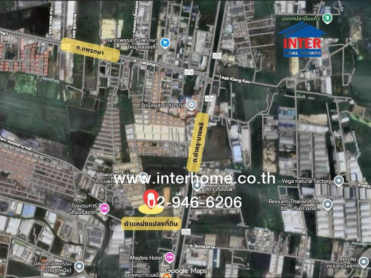 คุณ ณัฐสิน ตรีเพ็ชร (คิริน) เบอร์ติดต่อ : คลิกเพื่อดูเบอร์โทรติดต่อ Office : คลิกเพื่อดูเบอร์โทรติดต่อ สอบถามทางไลน์ https://lin.ee/xTo07Pn Line ID: @interhome รหัสอสังหาริมทรัพย์ : 65785 ขนาด 4 ไร่382 ตร.ว. ที่ตั้ง : ที่ดิน ใกล้เทศบาลตำบลแพรกษา ถ.อบจ. สมุทรปราการ 3074 เมืองสมุทรปราการ สมุทรปราการ รายละเอียด ใกล้เทศบาลตำบลแพรกษา บิ๊กซี เทสโก้ โลตัส แม็คโคร บางพลี-แพรกษา ขายที่ดินเปล่า ถนนอบจ. สมุทรปราการ 3074 (ถนนคลองตะเคียน-คลองลำบางผี) ตำบลแพรกษาใหม่ อำเภอเมืองสมุทรปราการ จังหวัดสมุทรปราการ ที่ดินเปล่า ถมแล้ว เนื้อที่ 4 ไร่ 3 งาน 82 ตร.ว. ด้านหน้าแปลงที่ดินติดถนน อบจ. สมุทรปราการ 3074 (ถนน คลองตะเคียน-คลองลำบางผี) ด้านหน้าหันหน้าทิศใต้ หน้ากว้าง ~74.5 ม. (โดยประมาณ) ด้านข้างทิศตะวันตกลึก ~65 ม. (โดยประมาณ) ด้านข้างทิศตะวันออกลึก ~145 ม. (โดยประมาณ) ทำเลศักยภาพรองรับการขยายตัวของเมือง เหมาะสำหรับการสร้างบ้าน หรือประกอบธุรกิจ เช่น โครงการจัดสรร โกดัง พื้นที่เก็บสินค้า โรงงาน ฯลฯ น้ำ-ไฟ เข้าถึง ผังสีเหลือง (ราคา ~34,000 บาท/ตร.ว.) + ทำเลดี สถานที่ใกล้เคียง เทศบาลตำบลแพรกษา บิ๊กซี เทสโก้ โลตัส แม็คโคร บางพลี-แพรกษา ตลาดสดแพรกษา ตลาดนัด ร้านค้าชุมชน ร้านสะดวกซื้อ โรบินสัน สมุทรปราการ ร.พ. จุฬารัตน์ 3 อินเตอร์ ร.พ. สมุทรปราการ ร.พ. สมุทรปากน้ำ ร.พ. เปาโล สมุทรปราการ รร. สารสาสน์วิเทศ สมุทรปราการ รร. สารสาสน์วิเทศ สุวรรณภูมิ รร. อัสสัมชัญ สมุทรปราการ + การเดินทางสะดวก ใกล้ถนนหลักหลายสาย ถนนตำหรุ-บางพลี ถนนแพรกษาใหม่ ถนนสุขุมวิท ถนนเทพารักษ์ ถนนบางนา-ตราด รถไฟฟ้า BTS สายสุขุมวิท สถานีแพรกษา บริษัท อินเตอร์โฮม เรียลตี้ เอสเตท จำกัด Interhome Realty Estate www.interhome.co.th โทร. คลิกเพื่อดูเบอร์โทรติดต่อ https://www.interhome.co.th/propertydetail.php?propcode=65785