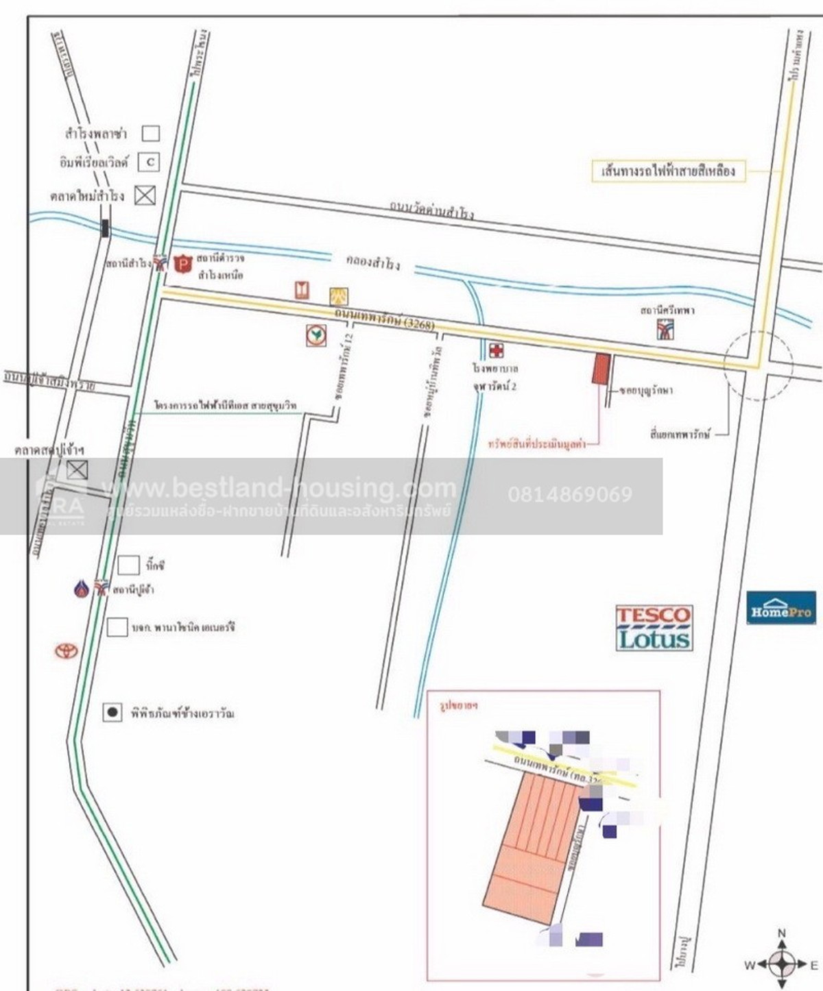 ขายที่ดิน ติดถนนเทพารักษ์ กม.3 ปากซอยบุญรักษา ใกล้รถไฟฟ้าสายสีเหลือง สถานีศรีเทพา 200 เมตร สถานที่ตั้ง อ.เมืองสมุทรปราการ จ.สมุทรปาการ