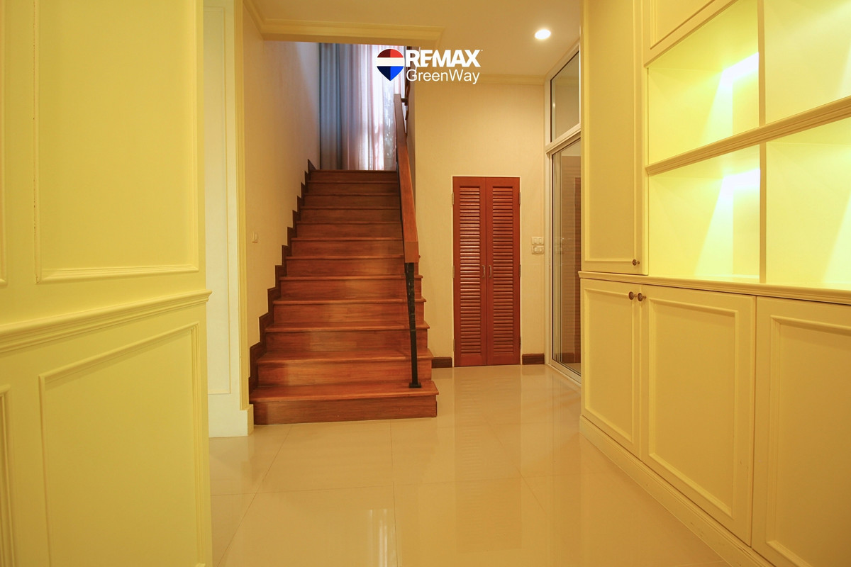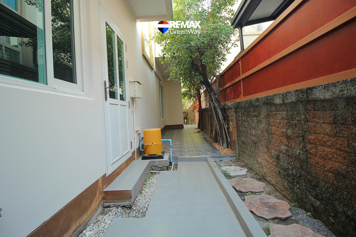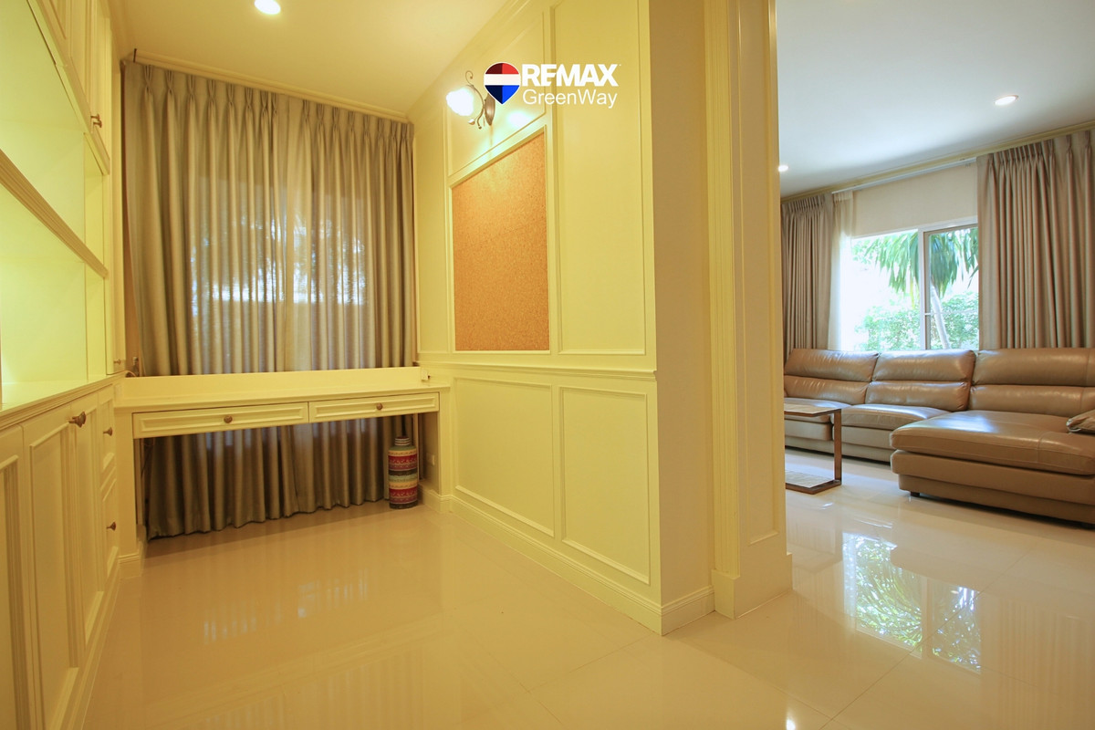 บ้านเดี่ยว 2 ชั้น เนื้อที่ 79.7 ตร.ว แบบบ้าน Lucia พื้นที่ใช้สอยกว้าง ถึง 265 ตร.ม มีห้องนอนชั้น1 รวม 4 ห้องนอน 4 ห้องน้ำ มีห้องครัว และ ห้องแม่บ้าน ห้องน้ำแยก 2 ที่จอดรถ ตกแต่งสวยเนี๊ยบสไตล์บ้านตัวอย่าง Modern Luxury บ้านใหม่ สะอาด พร้อมเฟอร์นิเจอร์บิ้วท์อินท์ทุกห้องสีโทนอ่อนให้ความเรียบหรู ดูมีรสนิยม รหัส : 018204 ราคาปกติ : 13,500,000.00 รายละเอียดทั้งหมด : ประเภท : บ้านเดี่ยว ความสูง : 2 ชั้น โครงการ : ลัดดารมย์ อิลิแกนซ์ วงแหวน สาทร ที่ตั้ง : ถ.กาญจนาภิเษก ซ.5/5 แขวงหลักสอง เขตบางแค จ.กรุงเทพมหานคร 10160 เนื้อที่ : 79.70 ตร.ว พื้นที่ใช้สอย : 265 ต.รม จำนวนห้อง : 4 ห้องนอน 4 ห้องน้ำ, ห้องครัว, ห้องแม่บ้าน+ห้องน้ำ, 2 ที่จอดรถ ตกแต่ง : เครื่องปรับอากาศ (5), เครื่องทำน้ำอุ่น(3), เฟอร์นิเจอร์บิ้วท์อินท์, ผ้าม่าน, ปั้มน้ำ , แท็งค์น้ำ ทิศหน้าทรัพย์ : เหนือ ปีที่สร้าง : 2556 (2013 ประมาณ 12 ปี) ทำเล : กัลปพฤกษ์ / เอกชัย / บางบอน บ้านหรู ริมถนนกาญจนาภิเษก หมู่บ้านลัดดารมย์ อิลิแกนซ์ วงแหวน สาทร (Laddarom Elegance Wongwan Sathorn) โครงการคุณภาพ จากควอลิตี้เฮ้าส์ ใกล้เดอะมอลล์บางแค และอยู่เยื้องสำนักงานเขตบางแค และ เบ๊นซ์ BKK เดินทางสะดวกทั้งเข้าเมือง ออกเมือง อ้อ RE/MAX GreenWay ภูมิใจนำเสนอบ้านหรูหลังนี้ค่ะ… ## 4 ข้อเด่นของบ้านหลังนี้ ที่คุณไม่ควรพลาดชมก่อนตัดสินใจซื้อบ้าน ## 1) ทำเลดี : ไม่มีเสาไฟฟ้าหน้าบ้าน จึงทำให้ต้นไม้เติบโตได้อย่างร่มรื่น มีพื้นที่เหลือข้างบ้านกว้าง กว่าบ้านไซด์เล็ก สามารถทำห้อง หรือ สันทนาการอื่นได้สบาย อีกทั้ง ในซอยเงียบสงบ รู้สึก Private มีบ้านเพียง 6 หลัง (ฝั่งละ 3 หลัง) 2) แบบบ้าน : Lucia พื้นที่ใช้สอยกว้าง 265 ตรม. ฟังก์ชั่นบ้านครบ เหมาะกับกับครอบครัวเริ่มต้น a) จำนวนห้องนอน : ชั้น 1 มีห้องนอน และห้องน้ำในตัว ชั้น 2 ประกอบด้วย 3 ห้องนอน 3 ห้องน้ำ และ มีห้องโถงก่อนเข้าห้องนอน (ทำเป็นห้องทำงาน หรือห้องพระได้) b) ห้องครัว : อยู่ฝั่งด้านขวาของบ้าน มีเคาน์เตอร์ครัวปูน พร้อมตู้ด้านบนบิ้วท์อินท์ มีประตูทางออกไปลานซักล้างหลังบ้านได้ พร้อมหน้าต่างระบายอากาศ c) ห้องแม่บ้าน พร้อมห้องน้ำในตัว : อยู่ด้านซ้ายของบ้าน ฝั่งสวนกว้างข้างบ้าน d) ที่จอดรถ : หน้าบ้านทำหลังคากันแดด กันฝนไว้เรียบร้อย พร้อมพื้นจอดรถทรายล้าง e) ด้านหน้าบ้าน และ ด้านหลังบ้าน ปูกระเบื้องทางเดินหินสีเทาให้ใหม่ พร้อมใช้ เดินสบายเท้า หมดกังวลเรื่องการสะดุด 3) ที่ดินแปลงใหญ่ : 79.7 ตรว. (บ้านส่วนใหญ่ ทั่วไป 60วา) ซึ่งพื้นที่ดินขนาดนี้ จะมีเพียงไม่กี่แปลงในโครงการ จึงทำให้บ้านสร้างไม่เต็มพื้นที่ มีพื้นที่สวนข้างบ้านด้านซ้ายกว้างขวาง ไม่อึดอัด เพราะไม่ติดกับบ้านเพื่อนบ้าน 4) การตกแต่งสวย Mod
