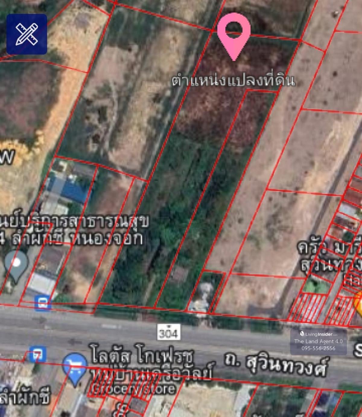 ขายที่ดิน ถ.สุวินทวงศ์ #หน้ากว้าง52เมตร เนื้อที่ 9-1-33.8 ไร่.#โกดังสินค้า ตรว.ละ 20,000.- บาท หรือ 74,676,000.- บาท ตั้งอยู่ ถนนสุวินทวงศ์ แขวงลำผักชี เขตหนองจอก กรุงเทพฯ #หน้ากว้างติดถนน52เมตร เหมาะสร้างคลังสินค้า Ware House ,สร้าง Office ,สร้างบ้านเดี่ยว ทาวน์โฮม พัฒนาอสังหาริมทรัพย์ ใกล้ตลาดลำผักชี ห่างแยกต่างระดับมหานคร (สะพานข้ามแยกถนนฉลองกรุง 5) 1.4 km. ห่างจาก สนามกอล์ฟ วินเซอร์ปารค์ 4.3 km. ห่างแยกสุวินทวงศ์ 14.6 km รถบรรทุกสินค้าขนาดใหญ่สามารถเข้า-ออก ดวกสบายครับ ค่าใช้จ่ายการโอนกรรมสิทธิ์ผู้ขายรับผิดชอบ ตำแหน่งที่ดินแปลงนี้ https://goo.gl/maps/WTbufStNFWNZ3ran8 สนใจ คลิกเพื่อดูเบอร์โทรติดต่อ หรือ inbox Id line : chaiya.silom www.thelandagent40.com