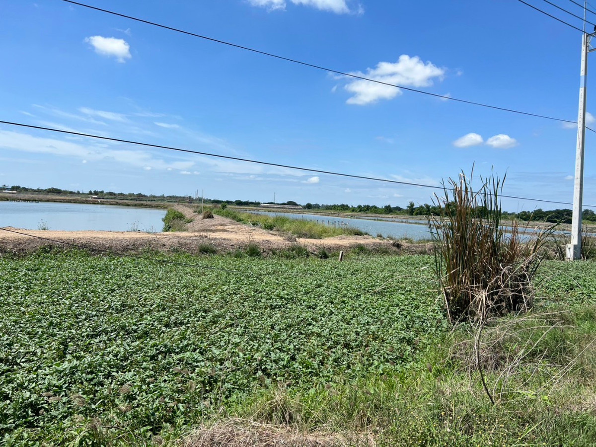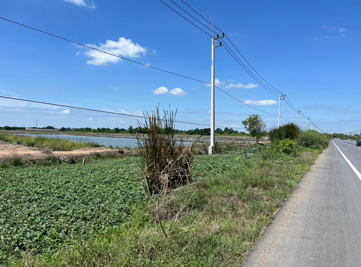ขายที่ดิน 17ไร่กว่า ตอนนี้มีผู้เช่าทำบ่อเลี้ยงกุ้งไม่ลึก ประมาณ 1เมตรนิดๆ ติดถนนใหญ่ 4 เลน หน้ากว้างติดถนนถึง 344 เมตร ขายถูกที่สุดในระแวกนั้น ขายเพียงไร่ละ 3.5 ล้านบาท(ค่าใช่จ่ายที่กรมที่ดินที่เกิดขึ