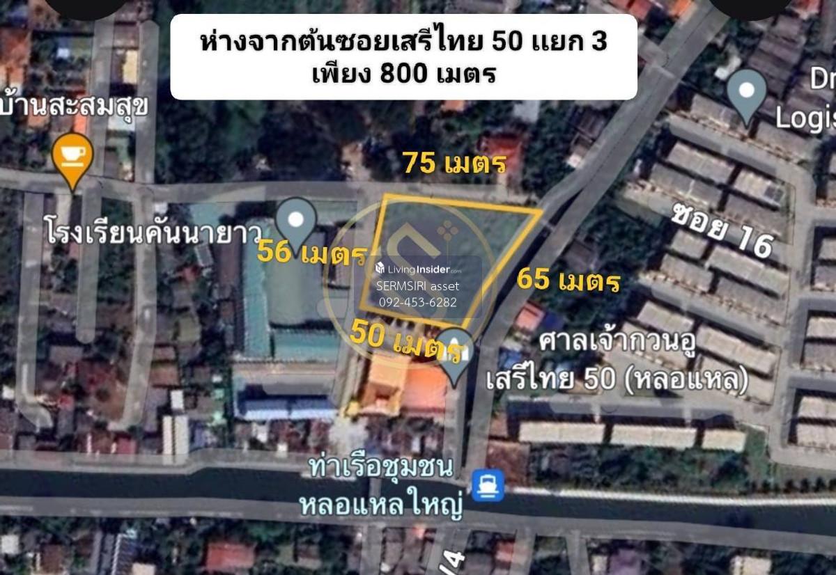 ให้เช่าที่ดินซอยเสรีไทย50เเยก 3 ที่ดินติดคลองยาวบรรยากาศดี ขนาดที่ดิน 2 ไร่ 33 ตารางวา เข้าซอยเสรีไทย50เเยก3 ราว 800 เมตร ติดคลองหน้ากว้างยาว 65 เมตร ติดโรงเรียนคันนายายาว ติดกับศาลกวนอู (เสรีไทย50) ใ