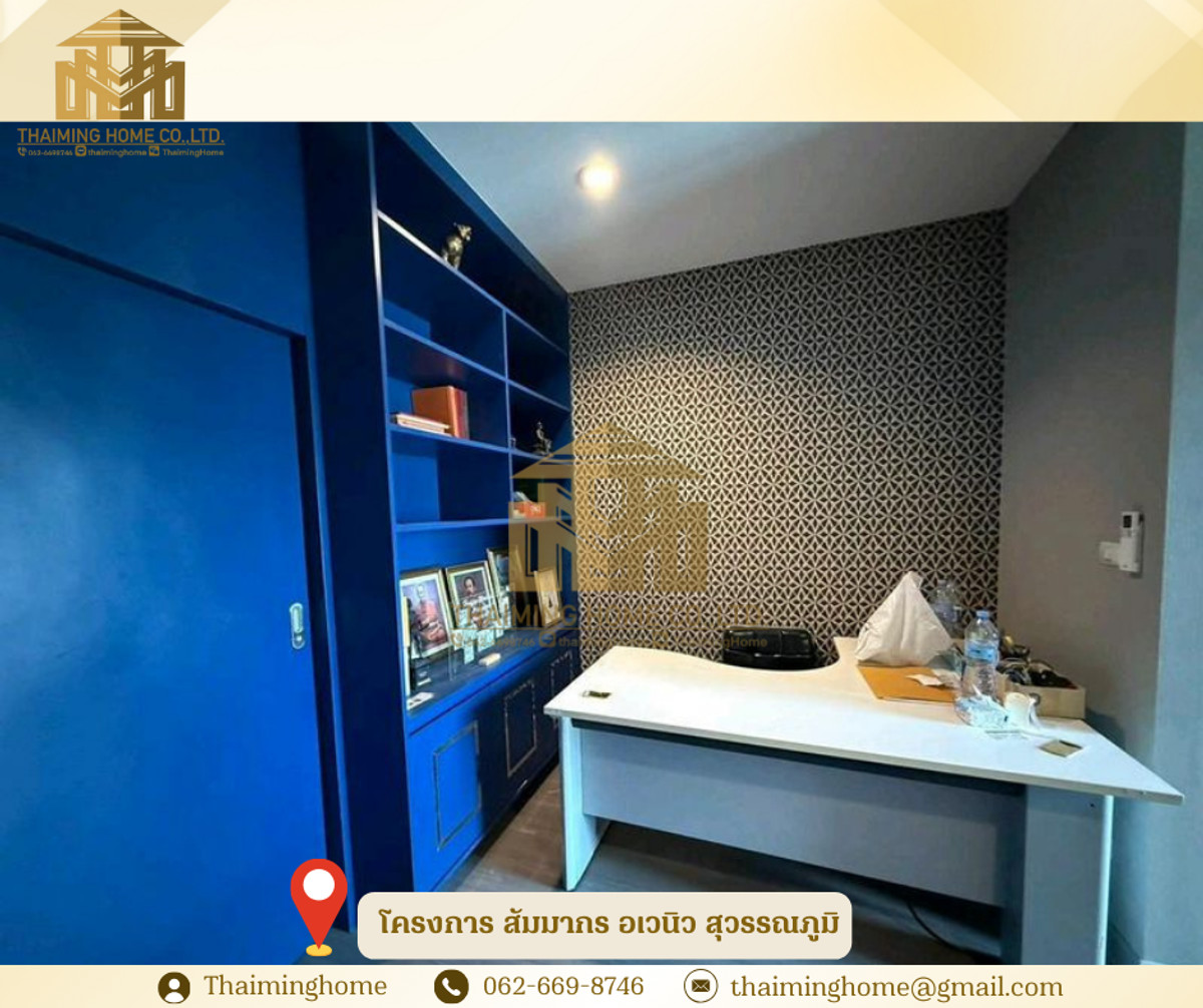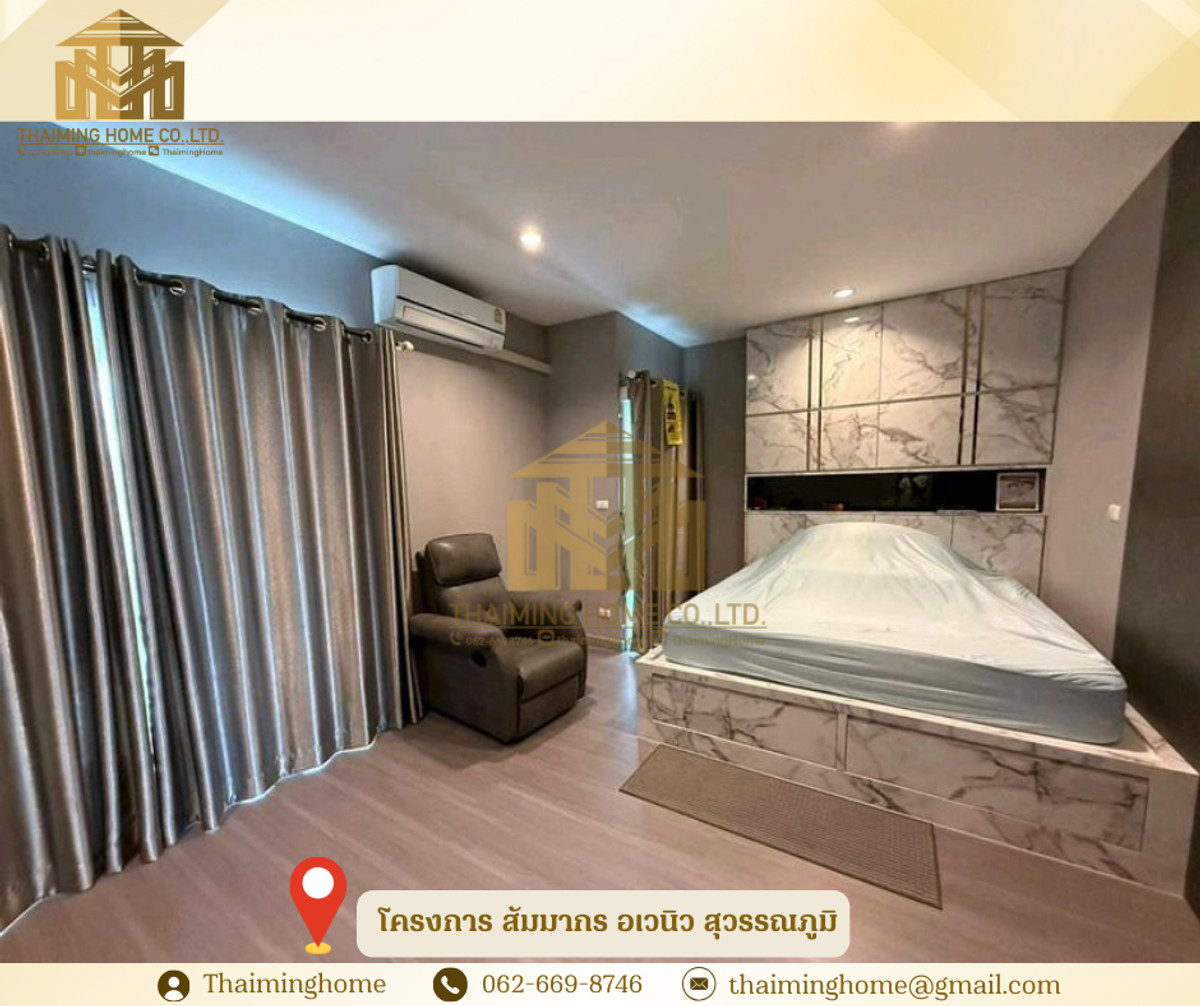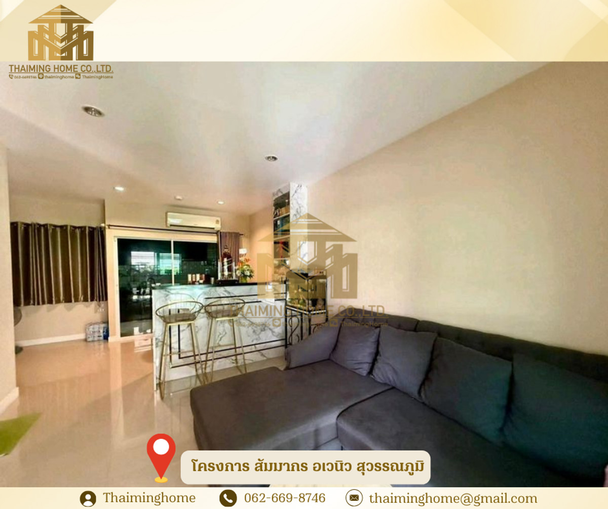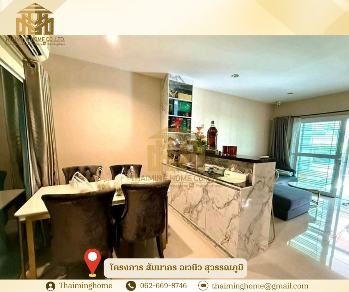 ให้เช่าทาวน์โฮม 3 ชั้น โครงการ สัมมากร อเวนิว สุวรรณภูมิ(รหัสทรัพย์TH4-371225) รายละเอียด - ขนาด 176 ตรม. - บ้านหน้าทิศเหนือ เข้ากำแพง - 3 ห้องนอน | 3 ห้องน้ำ - ต่อเติมครัว + ห้องซักล้างเรียบร้อย - บิ้วอินครบทั้ง 3 ชั้น พร้อม Walk-in Closet - อมเฟอร์นิเจอร์ พร้อมอยู่ - ร์ Mitsubishi Inverter ครบทุกห้อง - าอยู่ได้ทันที ไม่ต้องแต่งเพิ่ม สถานที่ใกล้เคียง - สนามบินสุวรรณภูมิ - Airport Rail Link - เข้า-ออกเมืองสะดวก เชื่อมต่อมอเตอร์เวย์/ถนนกรุงเทพกรีฑาใหม่ - โลตัส อ่อนนุช - ตลาดน้ำขัวญ เรียม เงื่อนไขในการเช่า - สัญญาขั้นต่ำ 1ปี - เปงินประกัน 2เดือน - ล่วงหน้า 1เดือน - ราคาค่าเช่า 150,000 บาทต่อเดือน -------------------------------------- บริษัท ไทยหมิง โฮม จำกัด Thaiming Home Co.,Ltd. 泰明房园 房产公司 ----------------------- Contact ติดต่อ : คลิกเพื่อดูเบอร์โทรติดต่อ Contact : คลิกเพื่อดูเบอร์โทรติดต่อ คุณหมิง(中文) Line ID: thaiminghome Line ID: @thaiminghome https://lin.ee/PkkHwYv Wechat : ThaimingHome E-mail : คลิกเพื่อดูอีเมล -----------------------
