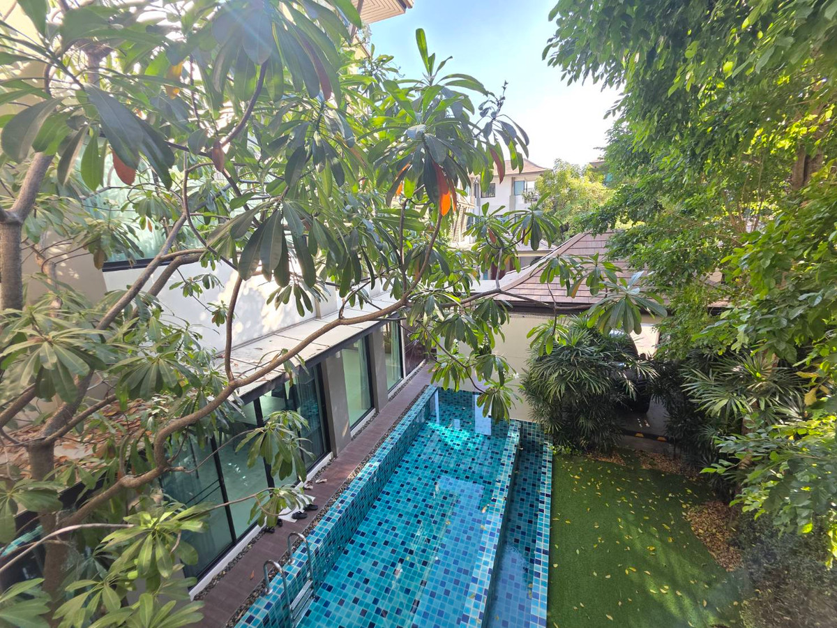 House Sukhumvit 49 Land size : 90 sq.w. House interior : 400 sq.m. 3+1 BR (Master BR with 2 walk-in closets) 4 Baths Working space 2 storages Separate maid’s quarter Private swimming pool 24 hrs secur