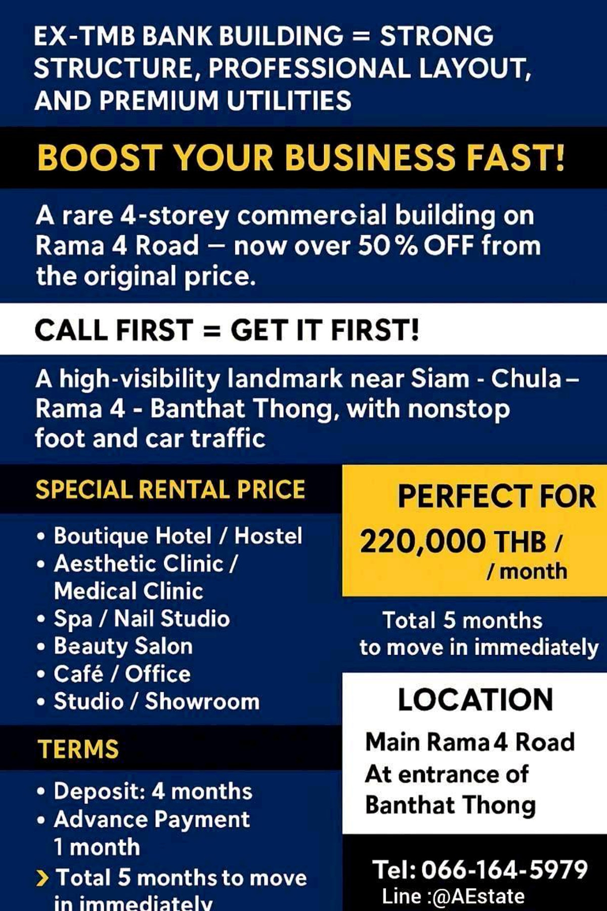 ð āļāļ·āđāļāļāļĩāđāđāļāļīāļāļāļēāļāļīāļāļĒāđāļŦāļēāļĒāļēāļ āđāļŦāļĄāļēāļ°āļŠāļļāļāļŠāļģāļŦāļĢāļąāļ Live Streaming / Online Sales / Creative Office āļāļģāđāļĨāļāļāđāļŦāđāļāļāļĢāļīāļ āļĨāļđāļāļāđāļēāđāļāđāļēāļāļķāļāļāđāļēāļĒ āļāļļāļĢāļāļīāļāđāļāđāļ§ 1 minute to MRT Hualampong. 2 minutes to the expressway. Zero minutes wasted. PRIME CITY SPACE FOR LIVE STREAMING & ONLINE BUSINESS Build. Broadcast. Sell. Grow â āļāļēāļāļāļģāđāļĨāđāļāļāļĨāļēāļāđāļĄāļ·āļāļ āļāļ·āđāļāļāļĩāđāđāļāļīāļāļāļēāļāļīāļāļĒāđāļŦāļēāļĒāļēāļ āđāļŦāļĄāļēāļ°āļŠāļļāļāļŠāļģāļŦāļĢāļąāļ Live Streaming / Online Sales / Creative Office āļāļģāđāļĨāļāļāđāļŦāđāļāļāļĢāļīāļ āļĨāļđāļāļāđāļēāđāļāđāļēāļāļķāļāļāđāļēāļĒ āļāļļāļĢāļāļīāļāđāļāđāļ§ ____________________________ ð WHY THIS LOCATION WORKS Central City Location â Visibility āļŠāļđāļ âĒ āļāļīāļāļāļāļāđāļŦāļāđ āļāļĢāļ°āļĢāļēāļĄ 4 âĒ āđāļāļĨāđ MRT āļŦāļąāļ§āļĨāļģāđāļāļ āđāļāļīāļāļāļķāļ (āļāļĢāļ°āļĄāļēāļ 1 āļāļēāļāļĩ) âĒ āđāļāļĨāđ āđāļĒāļēāļ§āļĢāļēāļ / āļāļļāļŽāļēāļŊ / āļŠāļĩāļĨāļĄ âĒ āļāļāļāđāļēāļāļāļąāđāļāļ§āļąāļ â āđāļāļĢāļāļāđāđāļŦāđāļāļāļąāļ ðĨ PERFECT FOR LIVE & ONLINE BUSINESS āļāļ·āđāļāļāļĩāđāļāļĢāđāļāļĄāļāļģāđāļāļīāļāļāļąāđāļāđāļāđāļ§āļąāļāđāļĢāļ âĒ āļāļēāļĢāđāļāļąāđāļāļĨāđāļēāļ + āļāļ·āđāļāļāļĩāđāđāļŦāļāđ 3 āļāļąāđāļāļāļĢāļķāđāļ âĒ āđāļāļāļāļ§āđāļēāļ āļāļĢāļąāļāđāļāđāļāļŠāļāļđāļāļīāđāļ / āđāļĨāļāđāļŠāļ / āļāļāļāļāļīāļĻāđāļāđ âĒ āđāļŦāļĄāļēāļ°āļŠāļģāļŦāļĢāļąāļāļāļĩāļĄāļāļēāļĒāļāļāļāđāļĨāļāđ & āļāļĢāļĩāđāļāđāļāļāļĢāđ âĒ āļāļģ Boutique Hotel / Brand Space āđāļāđ ________________________ ðĒ PROPERTY DETAILS Stand-Alone 4-Storey Building (Corner Unit) âĒ āļāļ·āđāļāļāļĩāđāđāļāđāļŠāļāļĒ ~750 sqm âĒ āļāļĩāđāļāļīāļ 100 sq.wah âĒ 10 Rooms | 8 Bathrooms âĒ 2 Large Halls âĒ Kitchen + Storage Room âĒ Parking 3â5 Cars âĒ āļāļēāļāļēāļĢāđāļāļīāļĄ TMB Bank â āđāļāļĢāļāļŠāļĢāđāļēāļāđāļāđāļāđāļĢāļ ðĨ SPECIAL RENTAL PRICE ONLY 199,999 THB / MONTH (From 400,000 THB / Month â āļĨāļāļāļ§āđāļē 60%) ð āļĢāļēāļāļēāļāļĩāđ = āđāļŦāļĄāļ·āļāļāļāļĒāļđāđāļāļāļāđāļĄāļ·āļāļ ð āđāļāđāļāļģāđāļĨāļāļĢāļīāļ = āđāļāļāļĨāļēāļāļāļĢāļĢāļāļąāļāļāļāļ â āļāļĢāļ°āļĢāļēāļĄ 4 ___________________________ â SUITABLE FOR âĒ Luxury Office / Corporate HQ âĒ Clinic / Medical Center âĒ Education Center / Tutorial School âĒ Fitness Studio / Gym âĒ Restaurant / Central Kitchen / Cloud Kitchen âĒ Live Streaming Studio âĒ Image-Driven / Brand-Focused Business âĒ Boutique Hotel / Creative Space ___________________ ð CONTACT â CALL FIRST, GET IT FIRST Agent: Aura ðą Tel: āļāļĨāļīāļāđāļāļ·āđāļāļāļđāđāļāļāļĢāđāđāļāļĢāļāļīāļāļāđāļ ðŽ Line: @hyl4686y ðĪ Co-Agent Welcome Google MapððâĪïļ #LiveStreamingStudio #OnlineBusinessSpace #CreativeOfficeBangkok #ShopForRent #Ladprao #BangkokCommercial #EcommerceHQ