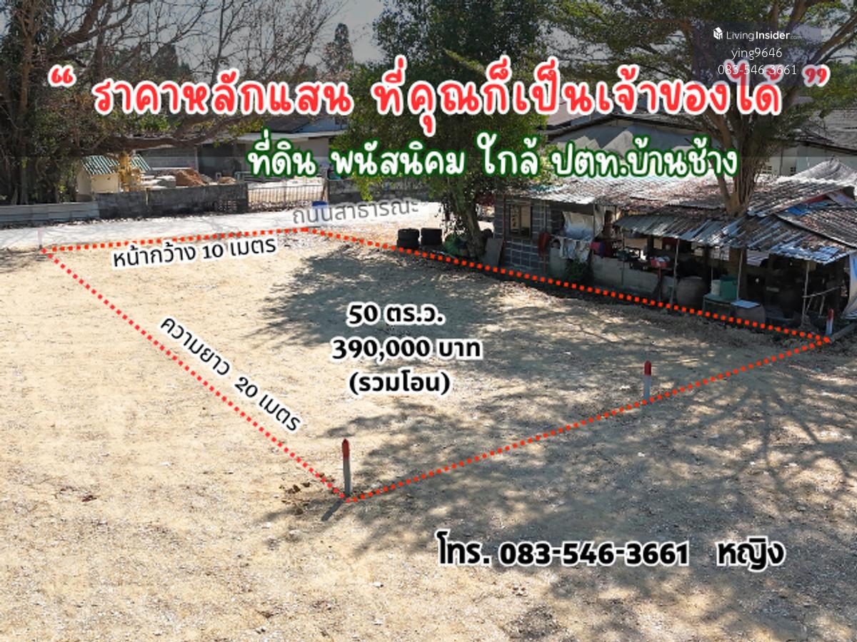 ขายถูก ที่ดินพนัสนิคม หลักแสน ที่ดินสวย 50 ตร.ว. ใกล้ตัวเมืองพนัสนิคม ทำเลทองสร้างบ้าน เพียง 390,000.- (โฉนดครุฑแดงพร้อมโอน) . อยากมีบ้านสวนหรือบ้านพักอาศัยในทำเลเดินทางสะดวกไหม? โอกาสทองสำหรับคนมองหาที่ดินแปลงเล็ก ราคาจับต้องได้ ในอำเภอพนัสนิคมมาถึงแล้ว! ที่ดินแบ่งขายสภาพดี พร้อมให้คุณเป็นเจ้าของ . รายละเอียดทรัพย์ - รูปแปลงสวย: ขนาด 50 ตร.ว. - หน้ากว้าง 10 เมตร ลึก 20 เมตร (วางแบบบ้านง่ายมาก) - พร้อมใช้งาน: ที่ดินถมแล้วเรียบร้อย ติดถนนสาธารณะ เข้า-ออกสะดวก - ทำเลดีเยี่ยม: อยู่ใกล้ตัวอำเภอพนัสนิคม และแยกการไฟฟ้าพนัสนิคม - พิกัดเด่น: ใกล้ อบต.นาวังหิน (หมู่ 9) เดินทางง่าย อยู่ในแหล่งชุมชน ไม่เปลี่ยว - ความคุ้มค่า: โฉนดครุฑแดงแท้ 100% ปลอดภัย ไร้กังวล - เหมาะสำหรับ: สร้างบ้านพักอาศัยท่ามกลางบรรยากาศเงียบสงบ ทำบ้านสวนวัยเกษียณ หรือปลูกผักสวนครัว ซื้อเก็บไว้เป็นทรัพย์สิน หรือเก็งกำไรในอนาคต . 🔥 โปรโมชั่นพิเศษ! เร่งด่วนก่อนหลุดจอง 🔥 ราคาเพียง 390,000 บาท เท่านั้น (ราคานี้กับทำเลใกล้ตัวเมือง หาได้ยากมาก!) 📌 จองวันนี้เพียง 30,000 บาท พร้อมโอนฟรี สนใจนัดชมที่ดินหรือสอบถามเพิ่มเติม: 📞 ติดต่อ คุณหญิง: คลิกเพื่อดูเบอร์โทรติดต่อ (รีบทักก่อนมีคนปิดจบ เพราะที่ดินแปลงเล็กราคาต่ำกว่าล้านไปไวมากค่ะ!)