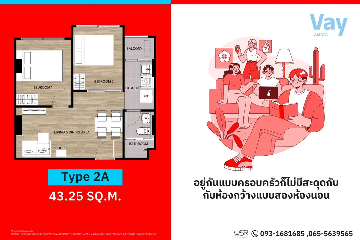 📌𝗩𝗮𝘆 𝗔𝗺𝗮𝘁𝗮 (เวย์ อมตะ) คอนโดใหม่พร้อมอยู่ ใกล้นิคมอมตะซิตี้ เพียง 1 นาที!💥 เริ่มเพียง 999,000 บาท ผ่อนเบาๆ เดือนละ 3,500 บาท* . ราคาเริ่มเพียง 𝟗𝟗𝟗,𝟎𝟎𝟎 บาท 💥 . ✅TYPE 1A | 23.25 ตร.ม. ฟังก์ชันครบ ใช้งานคุ้มค่า เหมาะกับการอยู่อาศัยส่วนตัว ✅TYPE 1B | 25.00–26.25 ตร.ม. กว้างสบาย รองรับการพักผ่อนและการใช้ชีวิตประจำวัน ✅TYPE 2A | 43.25 ตร.ม. 2 ห้องนอน พื้นที่กว้าง เหมาะกับการอยู่อาศัยแบบครอบครัว . 🏢 ทุกยูนิต แต่งครบ พร้อมอยู่ทันที 🌟 ฟรี เฟอร์นิเจอร์บิลต์อิน + ลอยตัว ดีไซน์เข้ากับแปลนห้อง 🌟 ฟรี เครื่องใช้ไฟฟ้าครบชุด ประหยัดค่าใช้จ่ายหลักแสน 🌟 ไม่ต้องตกแต่งเพิ่ม เข้าอยู่ได้เลย 🌟 นักลงทุนปล่อยเช่าได้ทันทีตั้งแต่วันโอน . 📍 ทำเลศักยภาพ ติดนิคมอุตสาหกรรมอมตะ ใกล้มอเตอร์เวย์ / บูรพาวิถี เดินทางสู่กรุงเทพฯ บางนา สมุทรปราการ ได้สะดวก . 📲 สอบถามรายละเอียดเพิ่มเติมหรือนัดหมายเข้าชมโครงการจริง LINE : @wsrcondo 📞 คลิกเพื่อดูเบอร์โทรติดต่อ / คลิกเพื่อดูเบอร์โทรติดต่อ . *เงื่อนไขเป็นไปตามที่บริษัทกำหนด . #WhiteSandRealEstate #VayAmata #คอนโดอมตะ #คอนโดชลบุรี #คอนโดพร้อมอยู่ #WSRCondo
