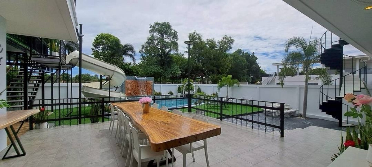 🏠 รายละเอียดบ้าน • บ้านหัวมุม รีโนเวทใหม่ • 6 ห้องนอน | 5 ห้องน้ำ • ครัวยุโรป ห้องนั่งเล่น และระเบียงขนาดใหญ่ชมวิวอ่างเก็บน้ำ • สระว่ายน้ำระบบเกลือ ขนาด 4×10 ม. พร้อมจากุซซี่และม่านน้ำตก • เนื้อที่ดิน 116 ตร.ว. (464 ตร.ม.) • พื้นที่ใช้สอยในบ้าน 350 ตร.ม. + นอกบ้าน 100 ตร.ม. • จอดรถในบ้าน 2 คัน หน้าบ้านได้อีก 6 คัน • เฟอร์นิเจอร์ครบ แอร์ 7 เครื่อง น้ำอุ่นทุกห้อง • ห้องนอนหลักมีอ่างอาบน้ำ • บรรยากาศเงียบสงบ ปลอดภัย ⸻ 🧭 สถานที่ใกล้เคียง • ตลาดสด และ 7-11 เพียง 5 นาที • 10 นาที ถึงหาดจอมเทียน, โลตัส, แมคโคร, เอาท์เล็ต • 5 นาที ถึง รร.สาธิตอุดมศึกษา • 10 นาที ถึง รร.นานาชาติ Tara Pattana และ Phoenix • 25 นาที ถึงสนามบินอู่ตะเภา • เข้าออกสะดวกทางสุขุมวิท, มอเตอร์เวย์ 7 และ 331