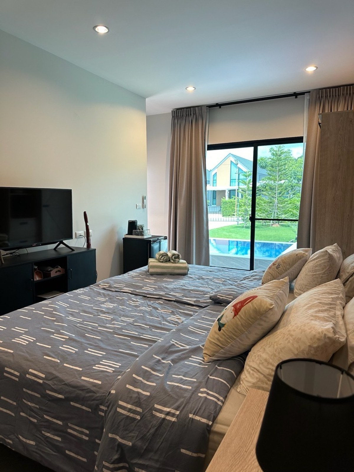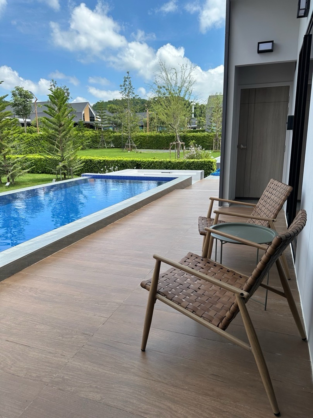 ติดต่อเจ้าของบ้าน คุณ อเล็กซ์ คลิกเพื่อดูเบอร์โทรติดต่อ Line: Alexwelove - โฉนดครุฑแดง 370 ตรว. - 4 นอน 6 น้ำ - ห้องนอน Master ขนาดใหญ่ พร้อมโซฟาเบด Modern form นอนได้ถึง4คน - ห้องรับแขก โซฟาหนัง3.8ม TV75นิ้ว - ครัวbuilt-in Island เครื่องล้างจาน - โต๊ะทานอาหารขนาดใหญ่ ไม้สักแท้ สีไวท์โอ๊ค - สระว่ายน้ำอัพเกรดด้วยกระเบื้องพรีเมี่ยมจาก SCG 3 x 9ม. พร้อม sunken seat - เครื่องซักผ้า เครื่องอบผ้า Bosch - บ้านพักรับรอง แยกอีก1หลัง พร้อมอ่างไม้ออนเซนส่วนตัว - ลานGlampung โต๊ะเก้าอี้ครบชุด - สวนสนซิลเวอร์โอ๊ค ขนาดใหญ่ส่วนตัว - ที่จอดรถ 6-8 คัน (ในร่ม2คัน) - บ้านเก็บของ 1หลัง - ห้องน้ำนอกบ้านสำหรับกางเต้นท์ - เครื่องปรับอากาศ เฟอร์ครบทุกห้อง - ม่านกันแดด100% - กล้องวงจรปิด 4ตัว รอบบ้าน - แทงค์น้ำ 2000ลิตร 3ถัง - ระบบปั๊มน้ำแยกใช้ในบ้านกับสวน - ระบบอินเตอร์เน๊ตไฟเบอร์ - ไฟฟ้าลงใต้ดิน ไม่เห็นสายไฟเกะกะ - ใหม่!! EV charger พร้อมตูู้ - ปลอดภัยมาก มีรปภ 24 ชั่วโมง #ขายพลูวิวล่าเขาใหญ่ #ขายบ้านเดี่ยวเขาใหญ่ #ขายบ้านเดี่ยวปากช่อง #ขายพลูวิลล่าปากช่อง