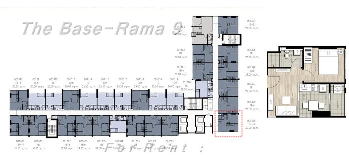 ให้เช่าคอนโด The Base Rama 9 (ห้องมุม) พระราม 9 เฟอร์ครบ พร้อมอยู่