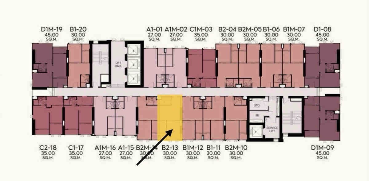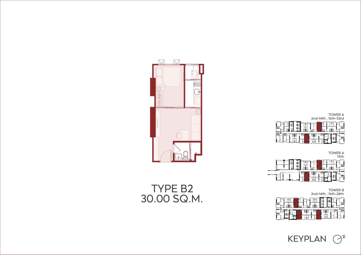 Unit ID: A27B2-13 (Tower A) Floor: 27th Floor (Premium High Zone with unblocked views) Type: 1 Bedroom (Type B2) Size: 30.00 sq.m. Key Selling Points: • Orientation: East View – Facing the morning sun