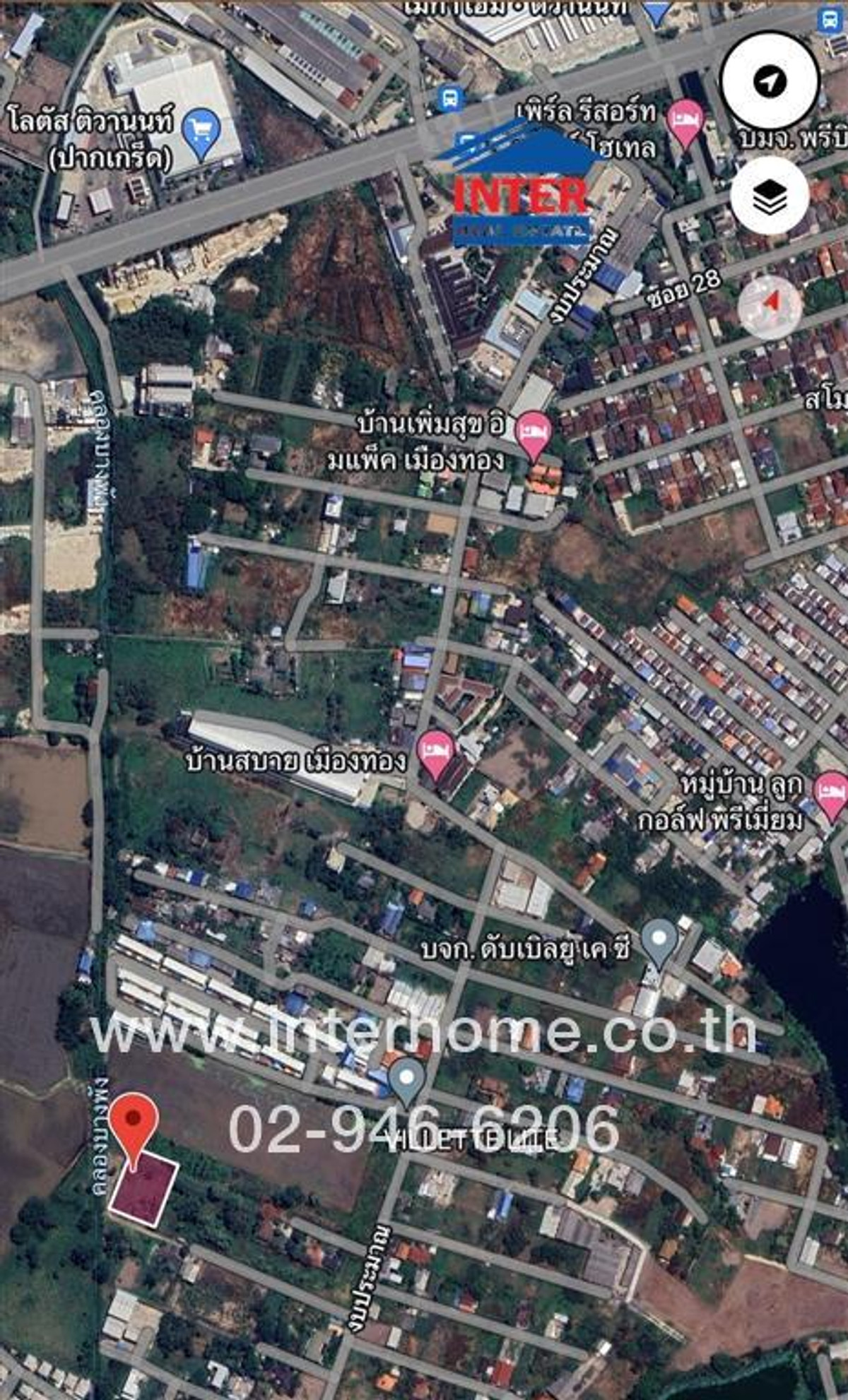 คุณ อาทิตยา พรมชัยชนะ (พลู) เบอร์ติดต่อ : คลิกเพื่อดูเบอร์โทรติดต่อ Office : คลิกเพื่อดูเบอร์โทรติดต่อ สอบถามทางไลน์ https://lin.ee/xTo07Pn Line ID: @interhome รหัสอสังหาริมทรัพย์ : 65951 ขนาด 101 ตร.ว. ที่ตั้ง : ที่ดินเปล่า ซอยติวานนท์-ปากเกร็ด34 (ซอยงบประมาณ16) ถ.ติวานนท์ ปากเกร็ด นนทบุรี รายละเอียด ใกล้Mega home ติวานนท์ Impact Areana เมืองทองธานี เมืองทองธานี ศูนย์จัดแสดงสินค้า Challenger Hall ขายที่ดินเปล่า ตรงข้าม Mega Home ติวานนท์ ซอยติวานนท์-ปากเกร็ด34 (ซอยงบประมาณ16) ถนนติวานนท์ ตำบลบางพูด อำเภอปากเกร็ด จังหวัดนนทบุรี ที่ดินเปล่า แปลงมุม เนื้อที่ 101 ตรว. เนื้อที่ 101 ตรว. วาละ 35,000 บาท ที่ดิน เหมาะทำที่อยู่อาศัย ทำเลดีสถานที่ใกล้เคียง : - Mega home ติวานนท์ -Impact Areana เมืองทองธานี -เมืองทองธานี ศูนย์จัดแสดงสินค้า Challenger Hall -เซนทรัลแจ้งวัฒนะ -แม็คโคร -บิ๊กซี -โลตัส -โฮมโปร -โรบินสันศรีสมาน -มหาวิทยาลัยสุโขทัยธรรมธิราช -มหาวิทยาลัยศิลปากร เมืองทองธานี -โรงเรียนเซนต์ฟรังเมืองทอง -สนามฟุตบอล SCG stadium เมืองทองธานี การเดินทางสะดวก : -ถนนติวานนท์-ปากเกร็ด -ถนนซอยติวานนท์-ปากเกร็ด 34 -รถไฟฟ้าสายสีชมพู -ทางด่วนบางปะอิน-ปากเกร็ด บริษัท อินเตอร์โฮม เรียลตี้ เอสเตท จำกัด Interhome Realty Estate www.interhome.co.th โทร. คลิกเพื่อดูเบอร์โทรติดต่อ https://www.interhome.co.th/propertydetail.php?propcode=65951