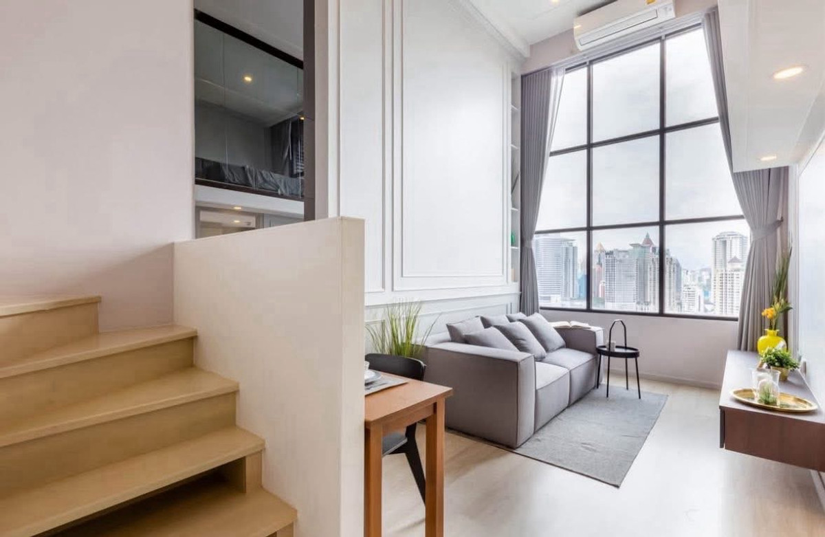 🛏️ 𝐑𝐨𝐨𝐦 𝐃𝐞𝐭𝐚𝐢𝐥𝐬 • Duplex 1 Bedroom + Walk-in Closet • 1 Bathroom • Size: 44 SQ.M. • Modern Contemporary Design • Fully Furnished & Ready to move in 📺 𝐅𝐮𝐫𝐧𝐢𝐭𝐮𝐫𝐞 & 𝐀𝐩𝐩𝐥𝐢𝐚𝐧𝐜𝐞𝐬 • โซฟา (Sofa) • โต๊