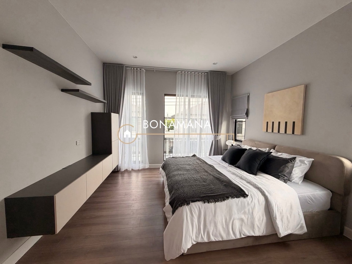 ให้เช่า บ้านใหม่ เศรษฐสิริ บางนา สุวรรณภูมิ (แสนสิริ) บ้านเดี่ยว 2 ชั้น พร้อมเข้าอยู่ พื้นที่ใช้สอย 319 ตร.ม. 3 ที่จอดรถ 4 ห้องนอน 5 ห้องน้ำ 1 ห้องอเนกประสงค์ 1 ส่วนรับประทานอาหาร 1 ห้องครัว 1 ห้องแม่บ้าน สิ่งอำนวยความสะดวกในโครงการ : สระว่ายน้ำระบบเกลือ (แยกสำหรับเด็กเพื่อความปลอดภัย) ฟิตเนส ห้องประชุม และ Sansiri Backyard ระบบรักษาความปลอดภัย 24 ชั่วโมง การเดินทางสะดวก : ใกล้ทางด่วนบูรพาวิถี มอเตอร์เวย์ และสนามบินสุวรรณภูมิ สถานที่ใกล้เคียง : ห้างสรรพสินค้า : เมกา บางนา, เซ็นทรัล วิลเลจ, ดีไซน์วิลเลจ โรงเรียน : Verso International School, Berkeley International School โรงพยาบาล : รพ.สมิติเวช ศรีนครินทร์ เช่า: 170,000 บาท/ เดือน (ต่อรองได้) สัญญา 1 ปี สนใจติดต่อคุณตั้ง: คลิกเพื่อดูเบอร์โทรติดต่อ Line ID: @bonamana Whatsapp: คลิกเพื่อดูเบอร์โทรติดต่อ