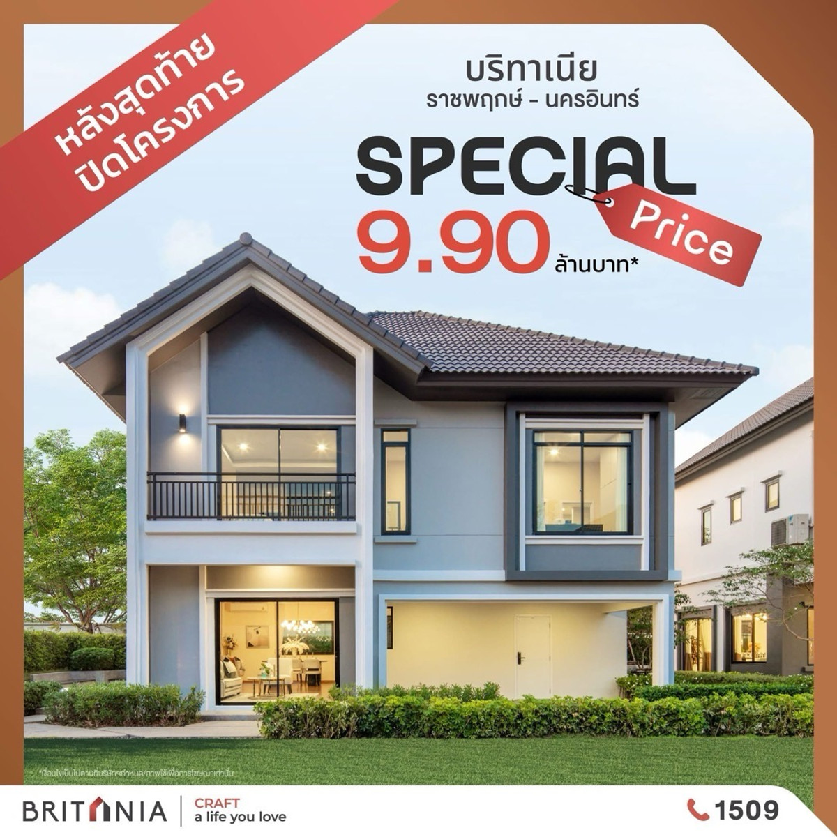 🔥𝐒𝐏𝐄𝐂𝐈𝐀𝐋 𝐏𝐑𝐈𝐂𝐄 บ้านเดี่ยว แปลงมุม พร้อมอยู่🔥 หลังสุดท้ายปิดโครงการ บ้านเลขที่ 95/1 ⚡️ พิเศษเพียง 𝟗.𝟗𝟎 ล้านบาท*⚡️ 𝗕𝗥𝗜𝗧𝗔𝗡𝗜𝗔 ราชพฤกษ์ - นครอินทร์ บ้าน 4 นอน พร้อมห้องนอนล่าง พืเนที่ใช้สอย 220 ตรม. ที่ดินขนาด 63 ตรว. 📌ลงทะเบียนรับสิทธิพิเศษ https://line.me/ti/p/SgYYn0iIKS 🏡 Private Living เพียง 99 ครอบครัว 📌 ใกล้ 2 Central ‘Westville – Westgate’ เพียง 10 นาที* 🚗 เดินทางสะดวก เชื่อมต่อ 3 เส้นทางหลัก ราชพฤกษ์ - รัตนาธิเบศร์ - กาญจนาภิเษก 🚆 ใกล้รถไฟฟ้าสายสีม่วงสถานีบางพลู* . ลงทะเบียนหรือสอบถามข้อมูลเพิ่มเติม 📍 โทร. คลิกเพื่อดูเบอร์โทรติดต่อ 📍 Website : https://briurl.com/2p9y797e 📍 Line : https://line.me/ti/p/SgYYn0iIKS 📍 แผนที่โครงการ : https://briurl.com/2p8a65fa ⏱ สำนักงานขายเปิดบริการวันจันทร์ - วันอาทิตย์ 09.00 - 18.00 น. *เงื่อนไขเป็นไปตามที่บริษัทฯกำหนด _____________________________________ #บริทาเนีย #BRITANIA #บ้านบริทาเนีย #บ้านเดี่ยว #บ้านราชพฤกษ์ #CRAFTaLifeYouLove #ดีที่สุดคือใช้ชีวิตในแบบที่รัก