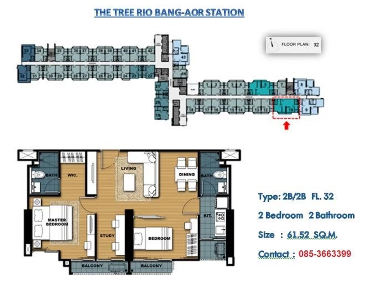 ให้เช่า 2 ห้องนอน คอนโด เดอะ ทรี ริโอ บางอ้อสเตชั่น ขนาด 61.52 ตารางเมตร ชั้น 32